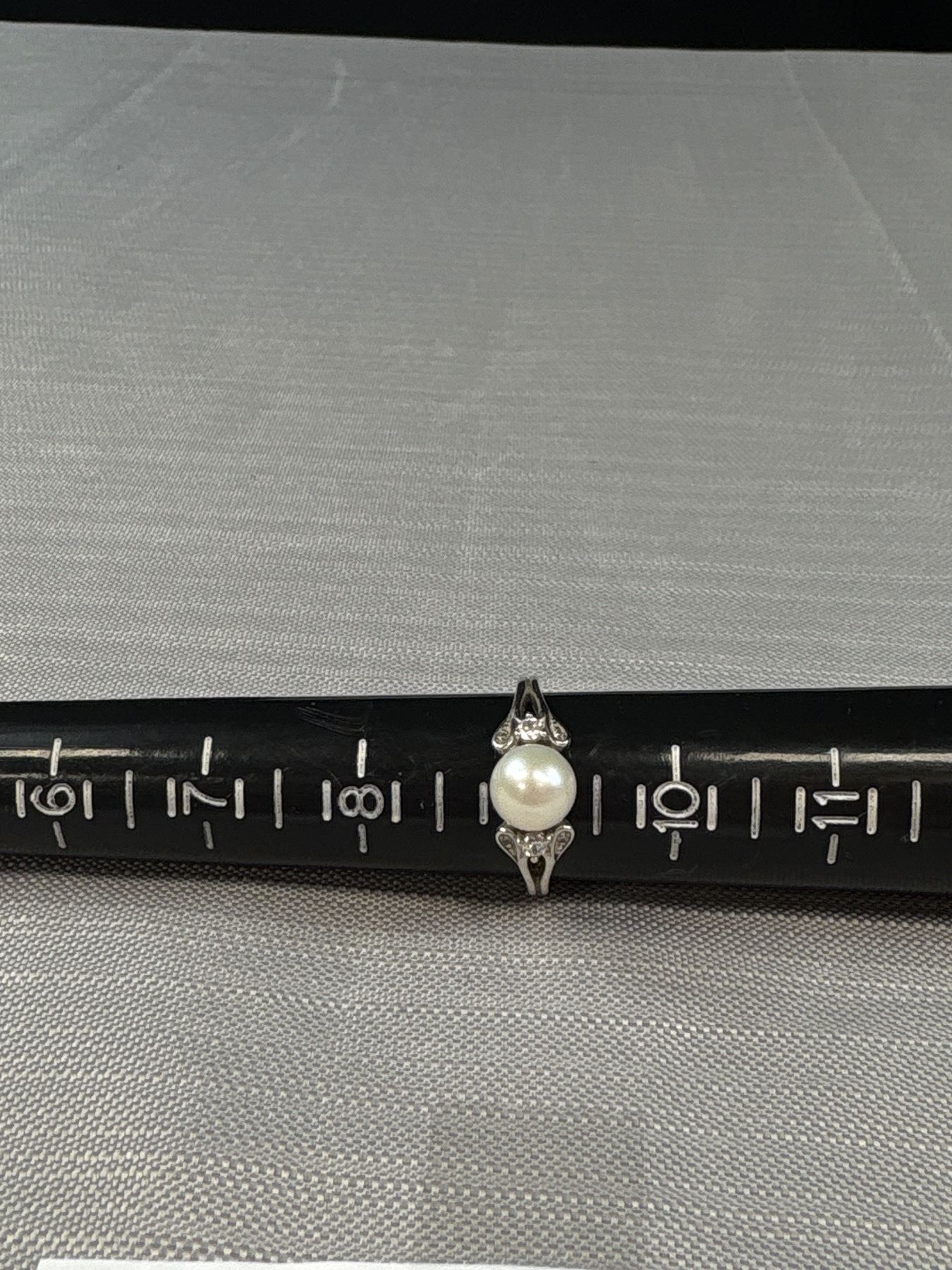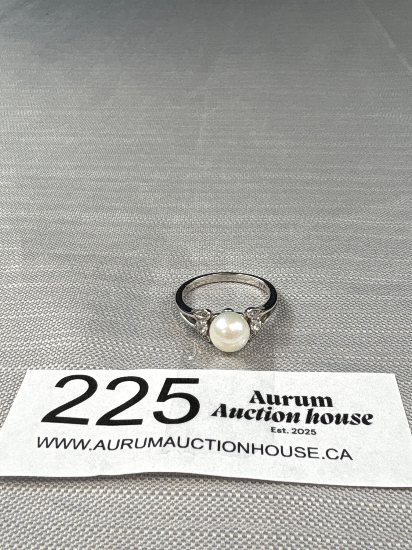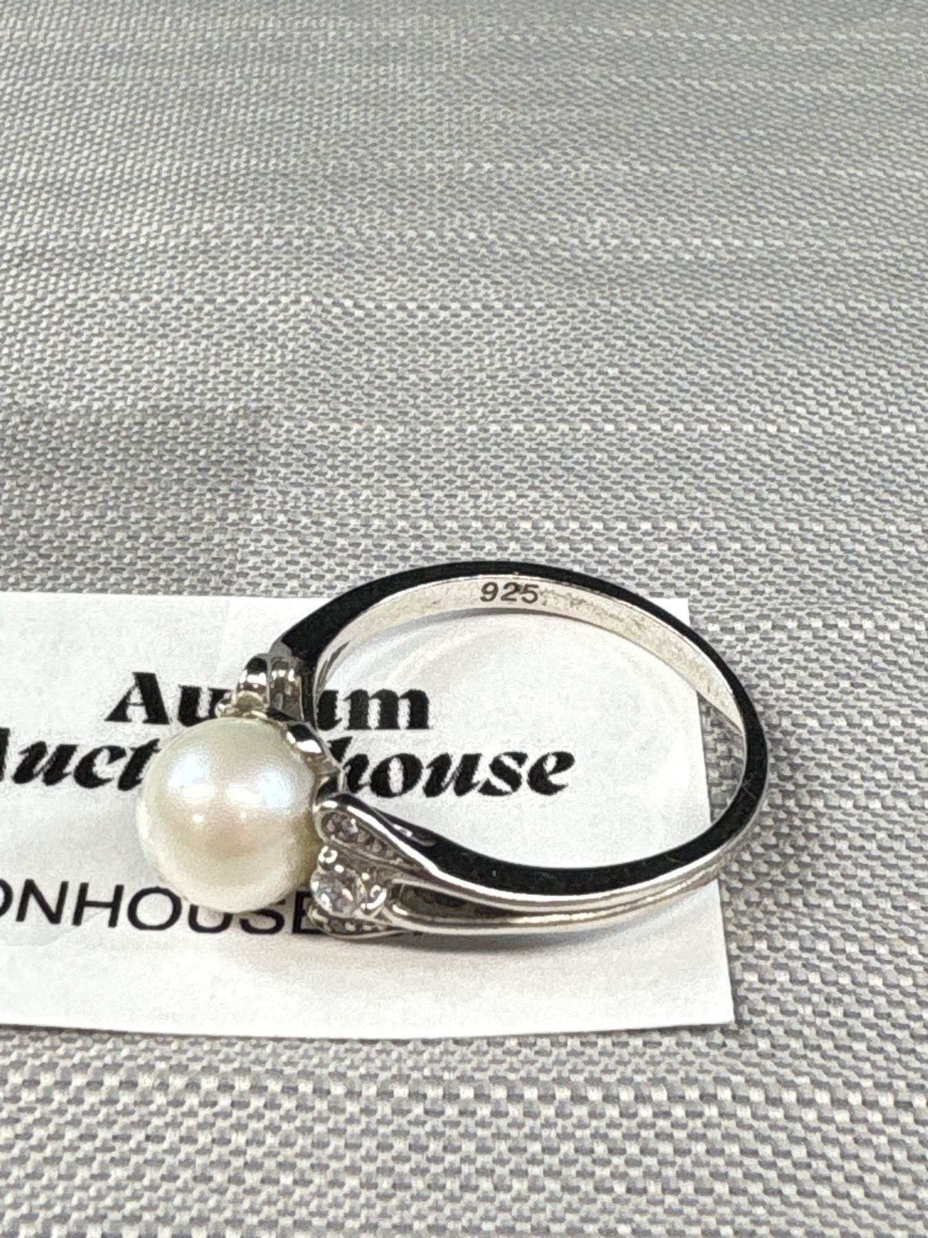 925 Sterling Silver Real Pearl & CZ Ring - Size 9 - Marked & Tested