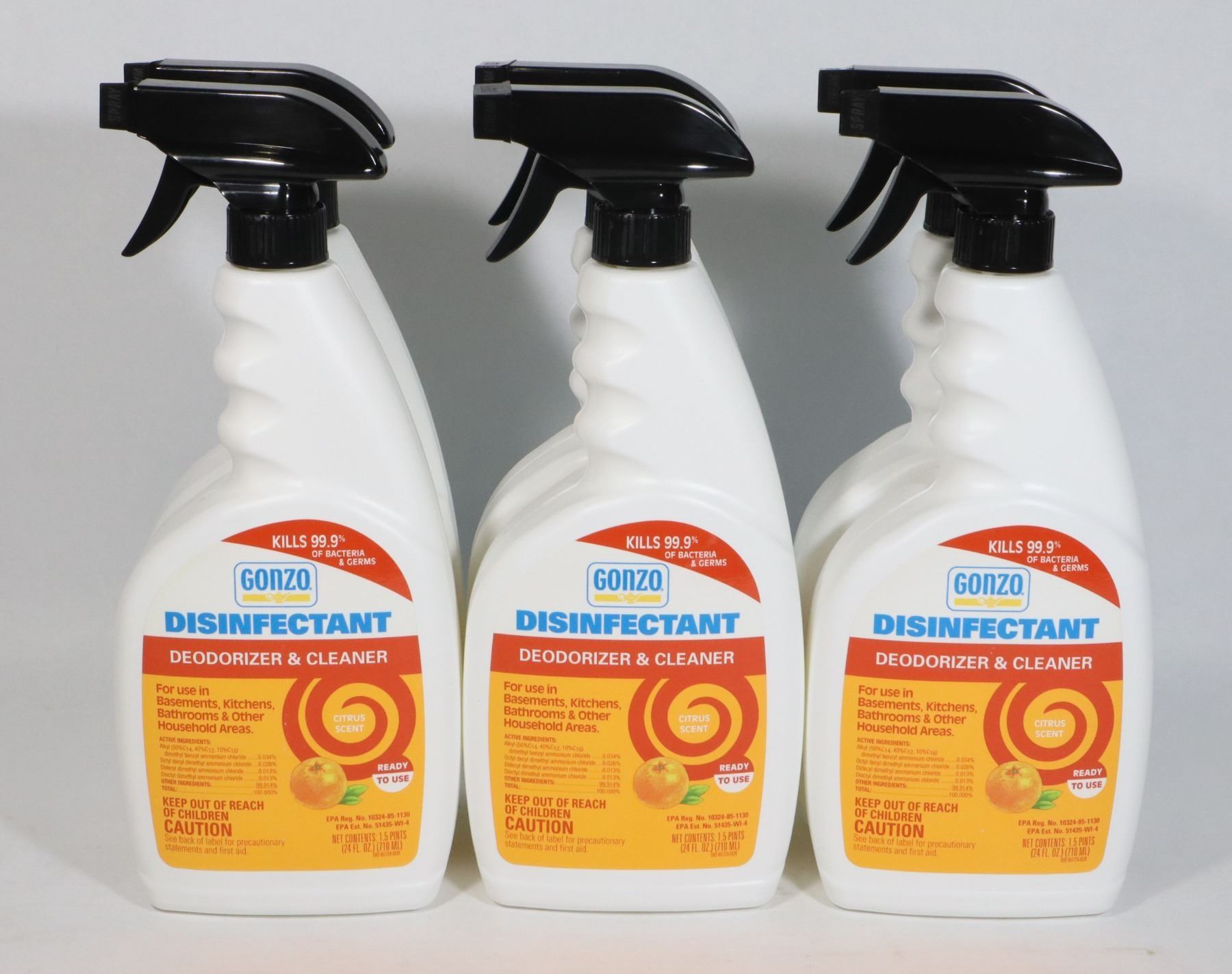 AND CLEANER SPRAY BOTTLE. CITRUS SCENT. 710ML EACH (24 FL OZ). SOME SEEPAGE IN TRANSPORT, CARDBOARD SLIGHTLY DAMAGED, BOTTLES ALL NEW/ UNDAMAGED