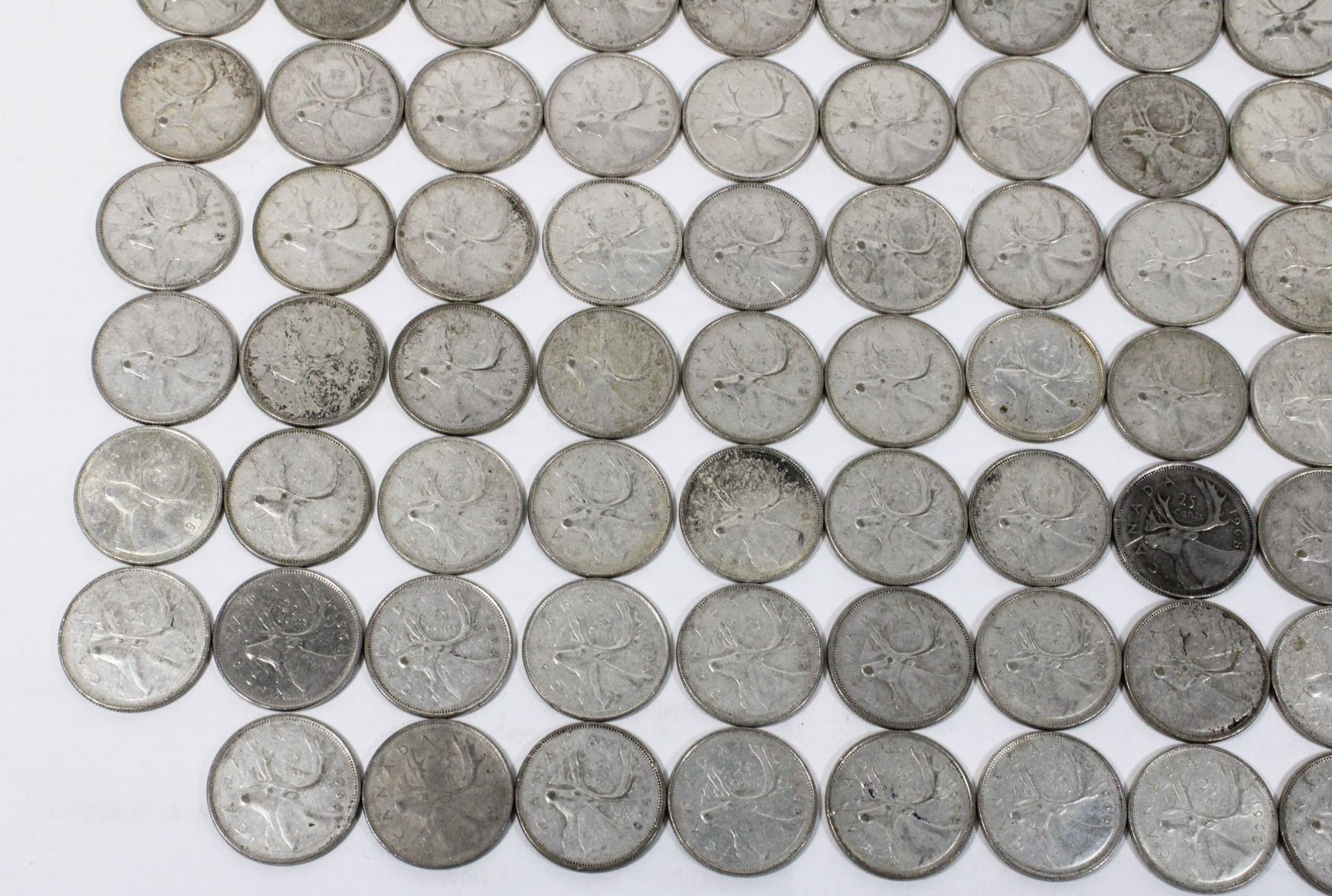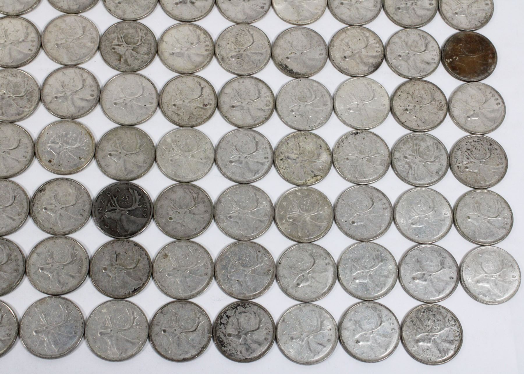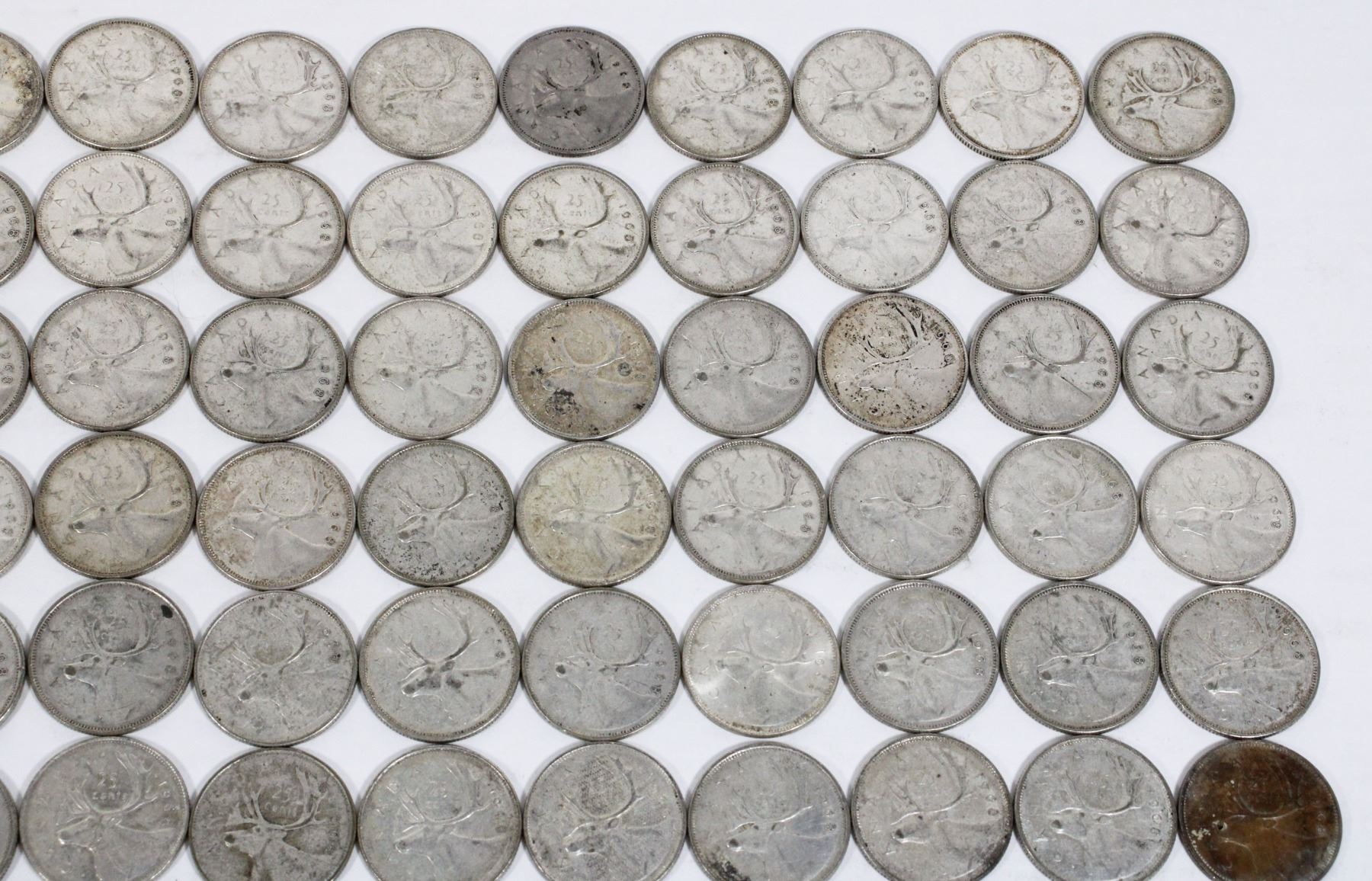 EACH COIN WEIGHTS 5.8 GRAMS (OR 2.9 GRAMS OF SILVER EACH) LARGE LOT OF 152 1958 CANADIAN SILVER 25 CENT QUARTERS QUEEN ELIZABETH II QEII