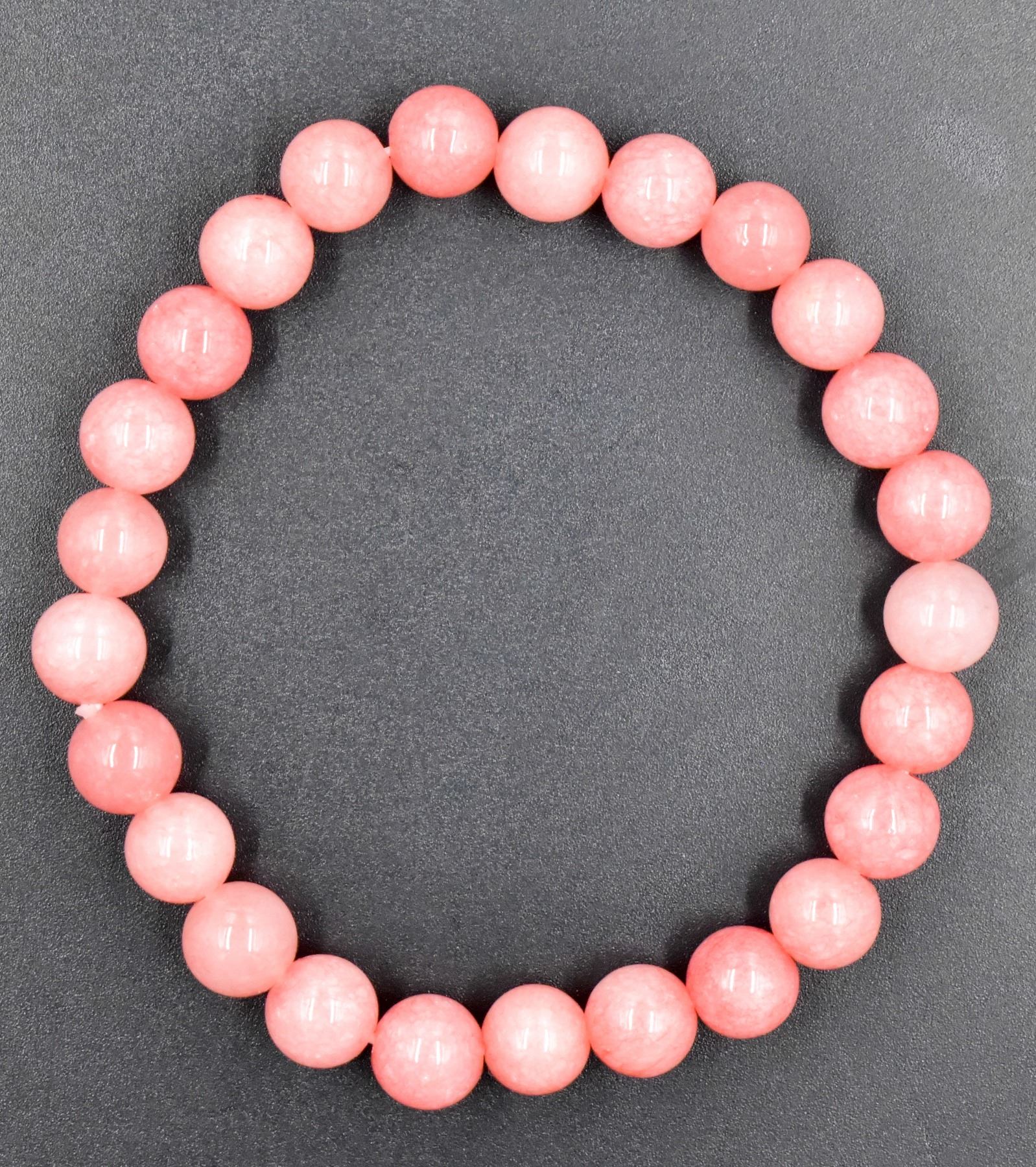 #94-NATURAL RHODOCHROSITE BEAD BRACELET 8MM/7.5"