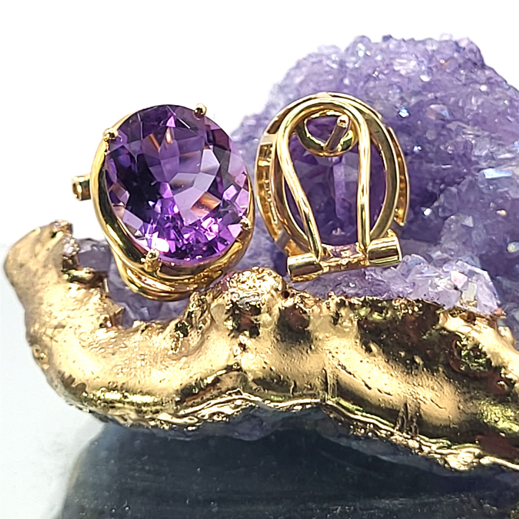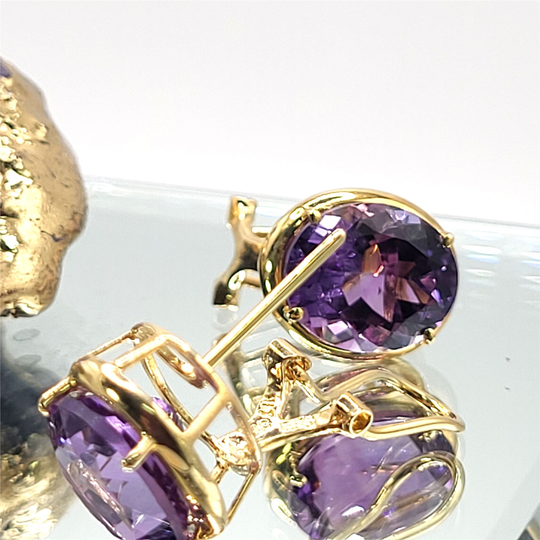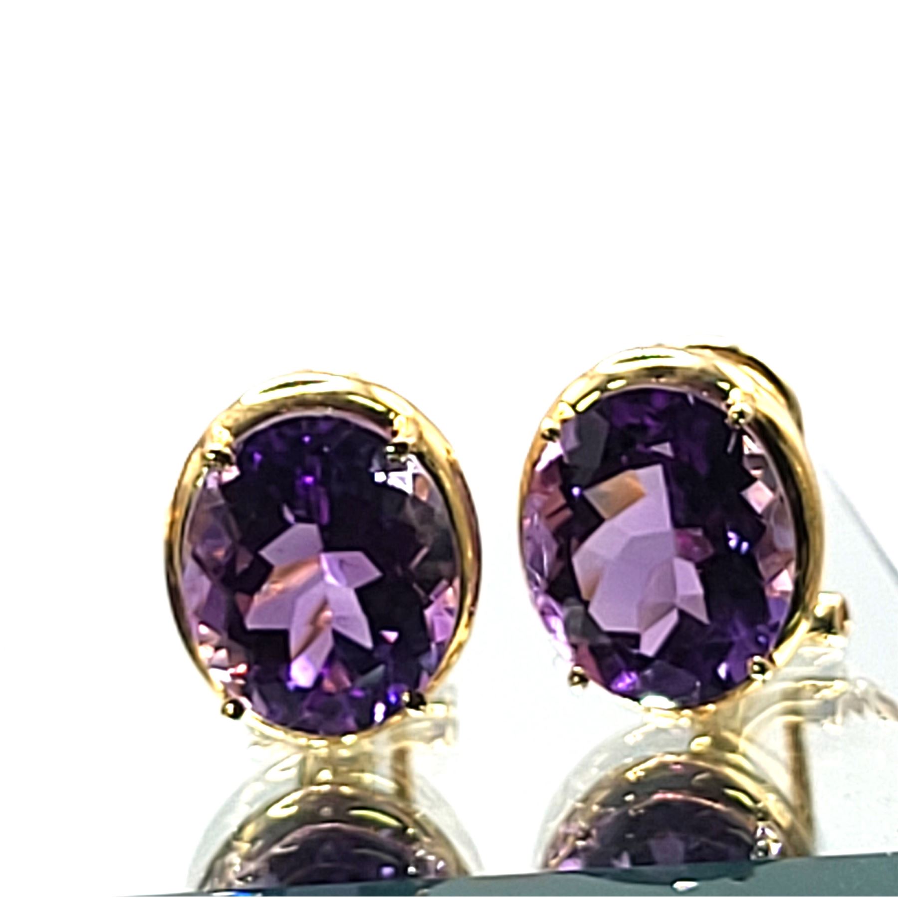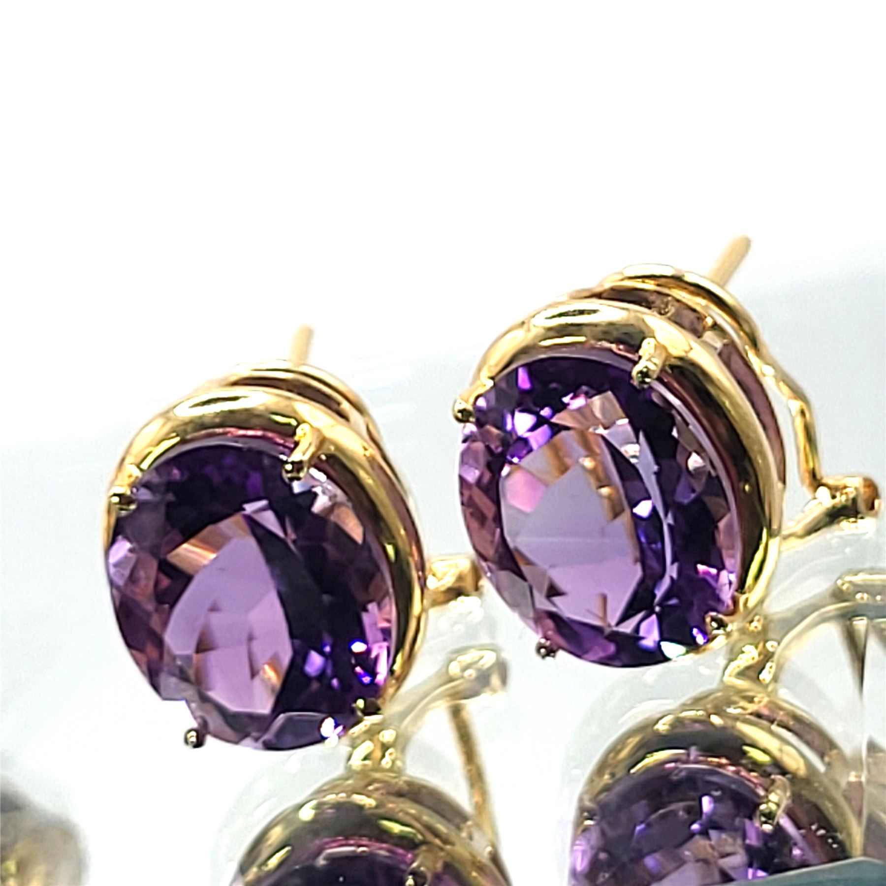 14KY earrings with approx 9.00 CTW oval-cut, prong-set, genuine amethysts with Omega backs.