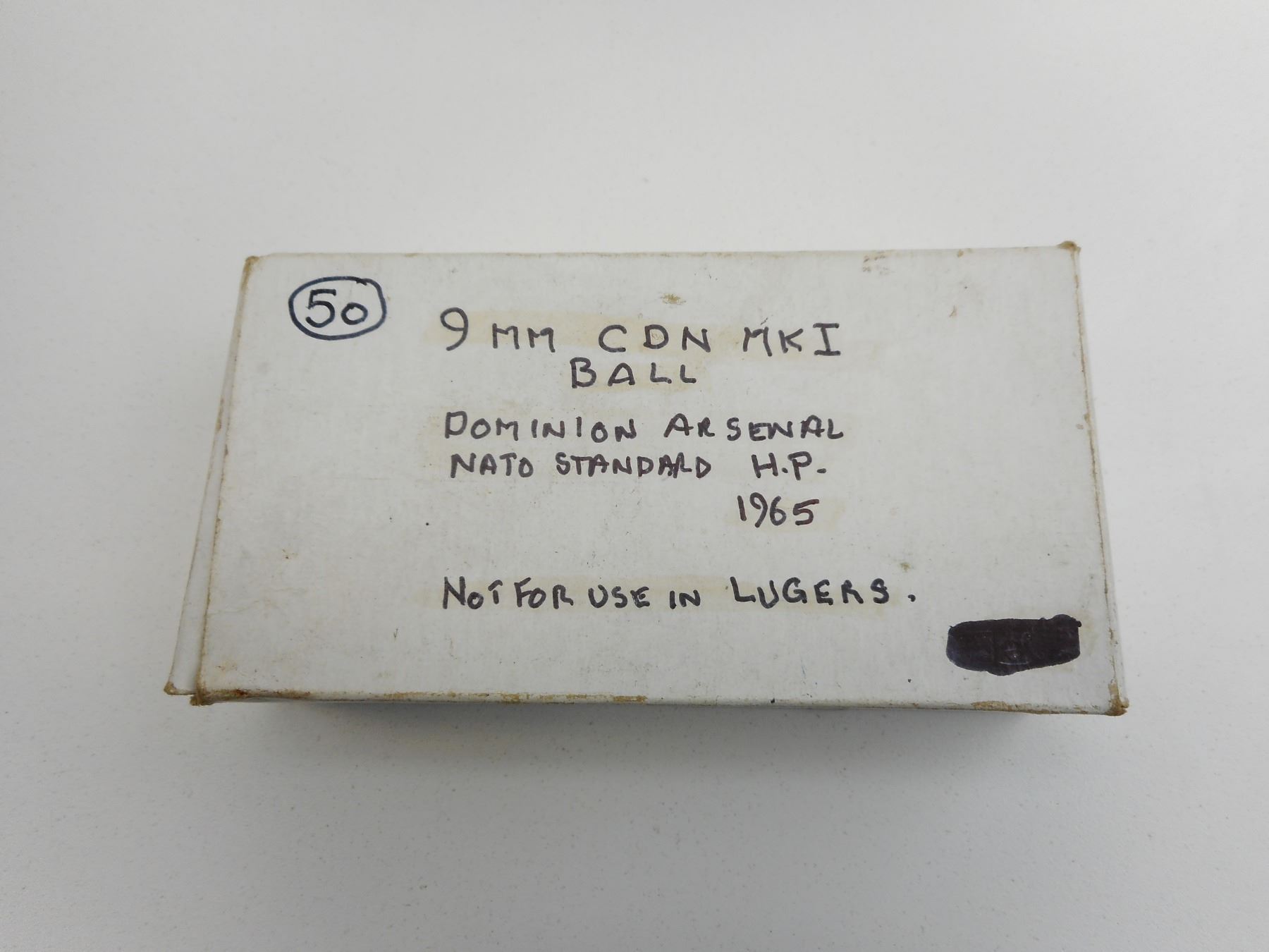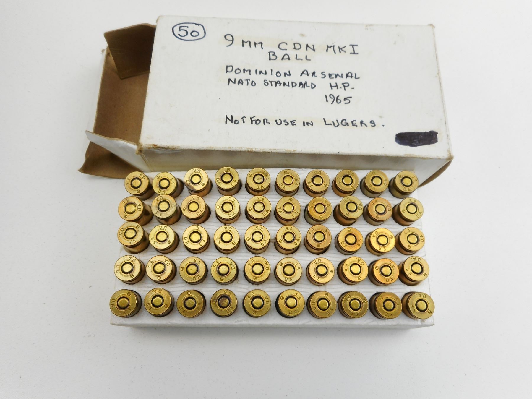 9MM CDN MKI BALL AMMO , 50 RNDS 9MM CDN MKI AMMO, DOMINION ARSENAL NATO STANDARD H.P. 1965