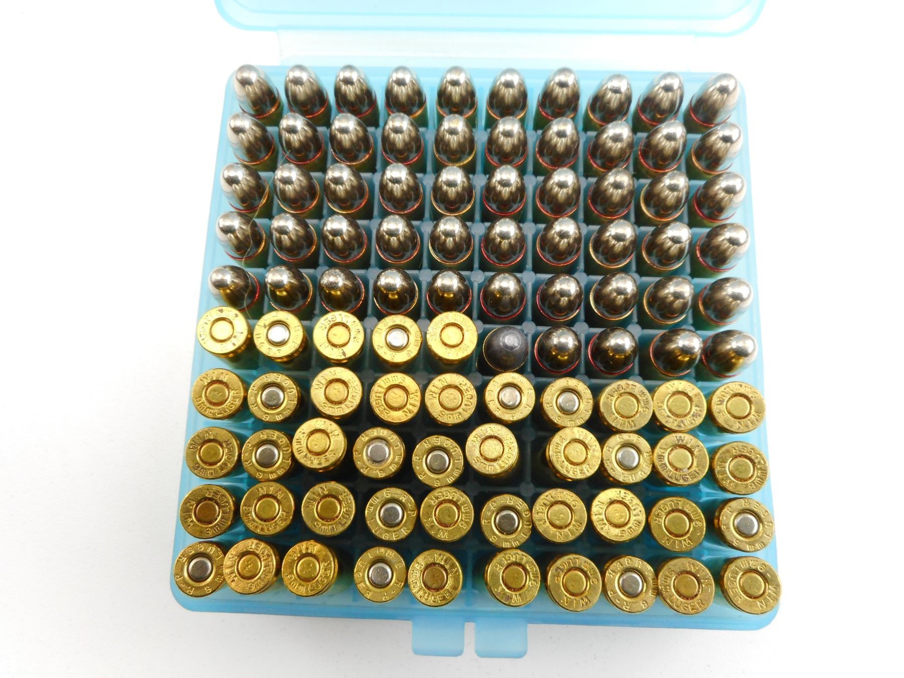 9MM LUGER AMMO ASSORTED , 100 RNDS 9MM LUGER ASSORTED AMMO, IN HARD PLASTIC CASE
