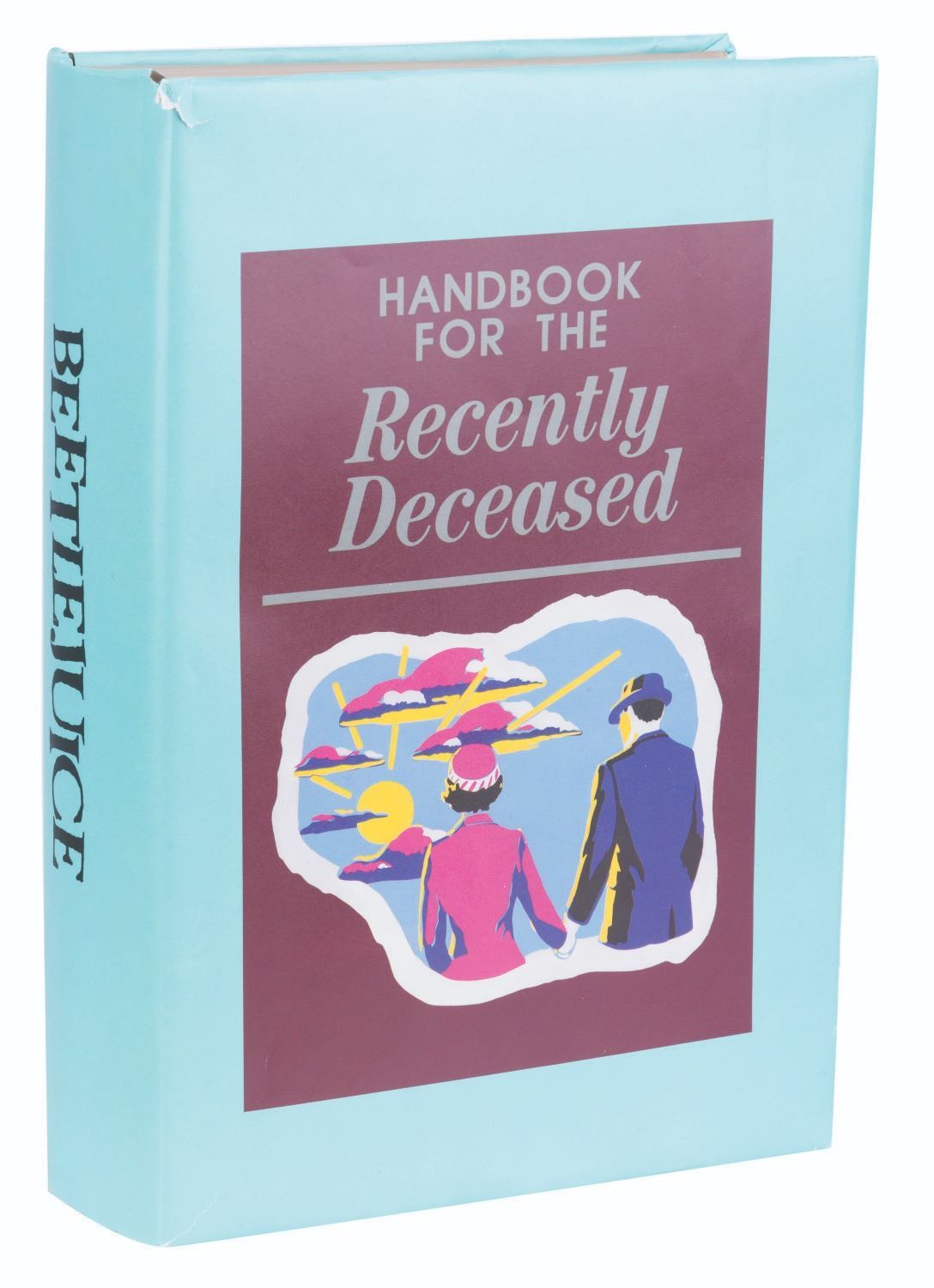 (Warner Bros., 1988) A Handbook for the Recently Deceased store display used to promote Tim Burton’s "Beetlejuice.” Measuring 11” x 7.75” and 3.25” thick, the display book does not open and is in good condition with wear to the corners, and light creasing and tears to the paper cover that do not affect the image.