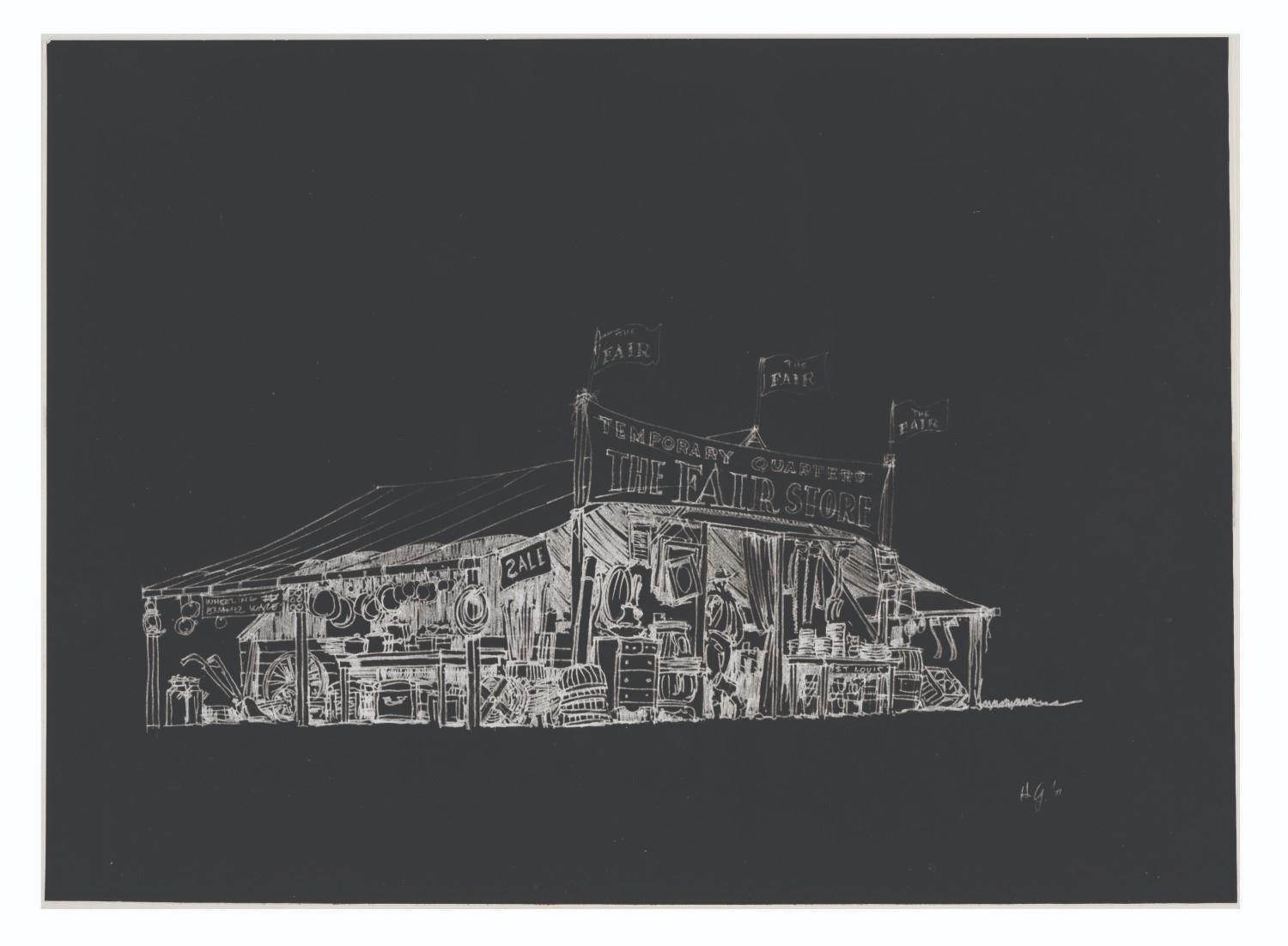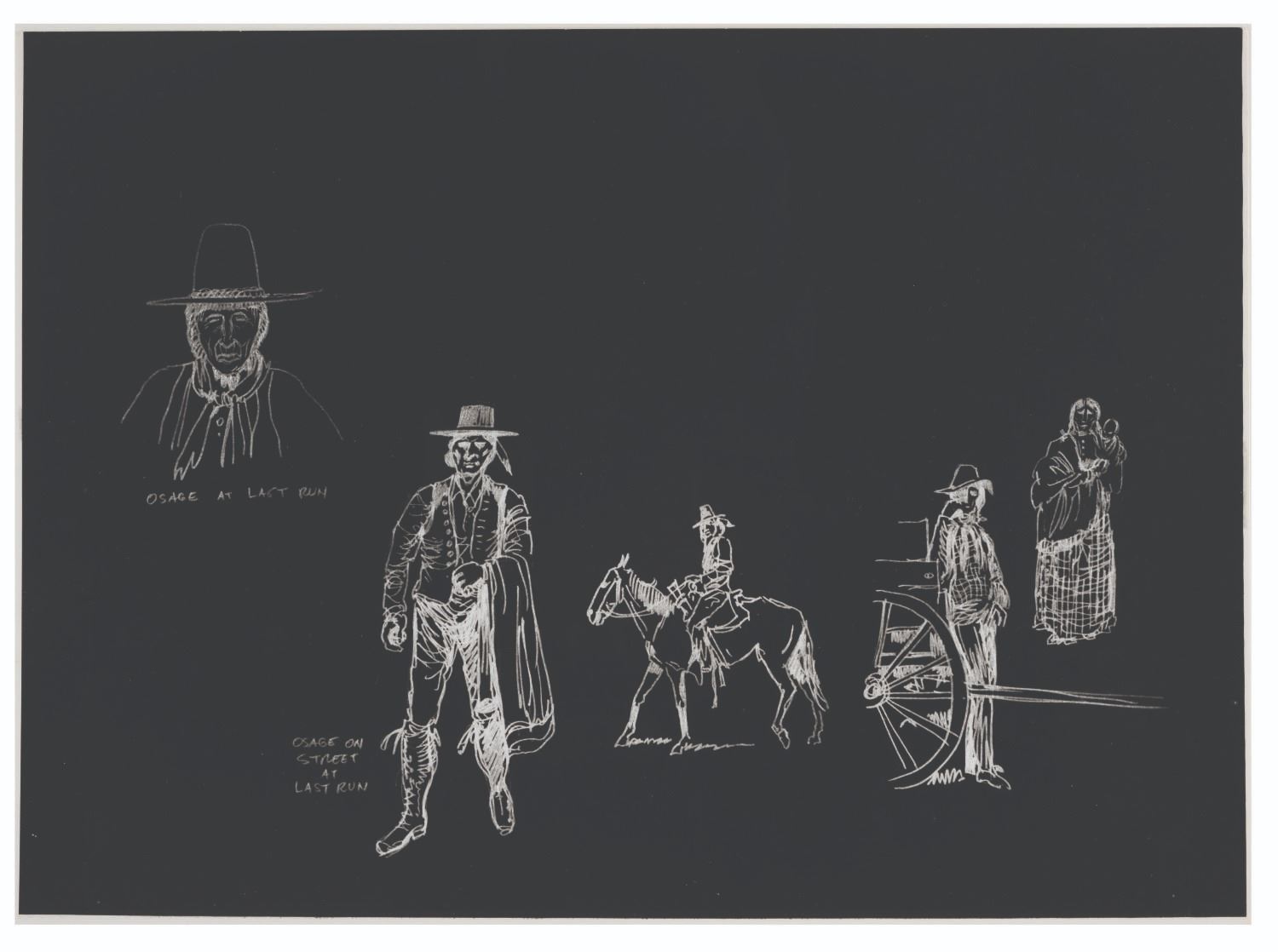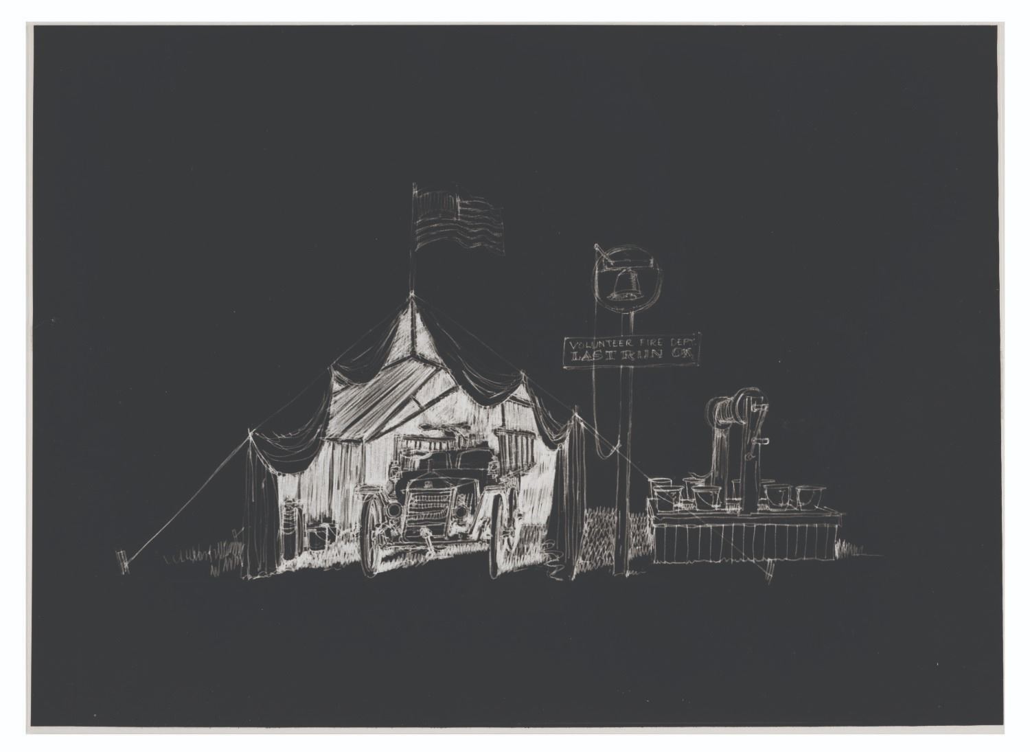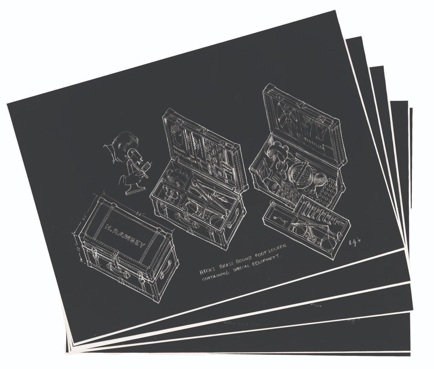 (NBC, 1972) A collection of five black and white concept art prints from the television series "Hec Ramsey.” The early 20th-century small-town concepts were designed by Disney Legend Harper Goff, who years earlier created the Nautilus for "20,000 Leagues Under the Sea.” Measuring 8.25” x 11.25” each, the prints display in good condition with heavy scratches, creases, and wear.