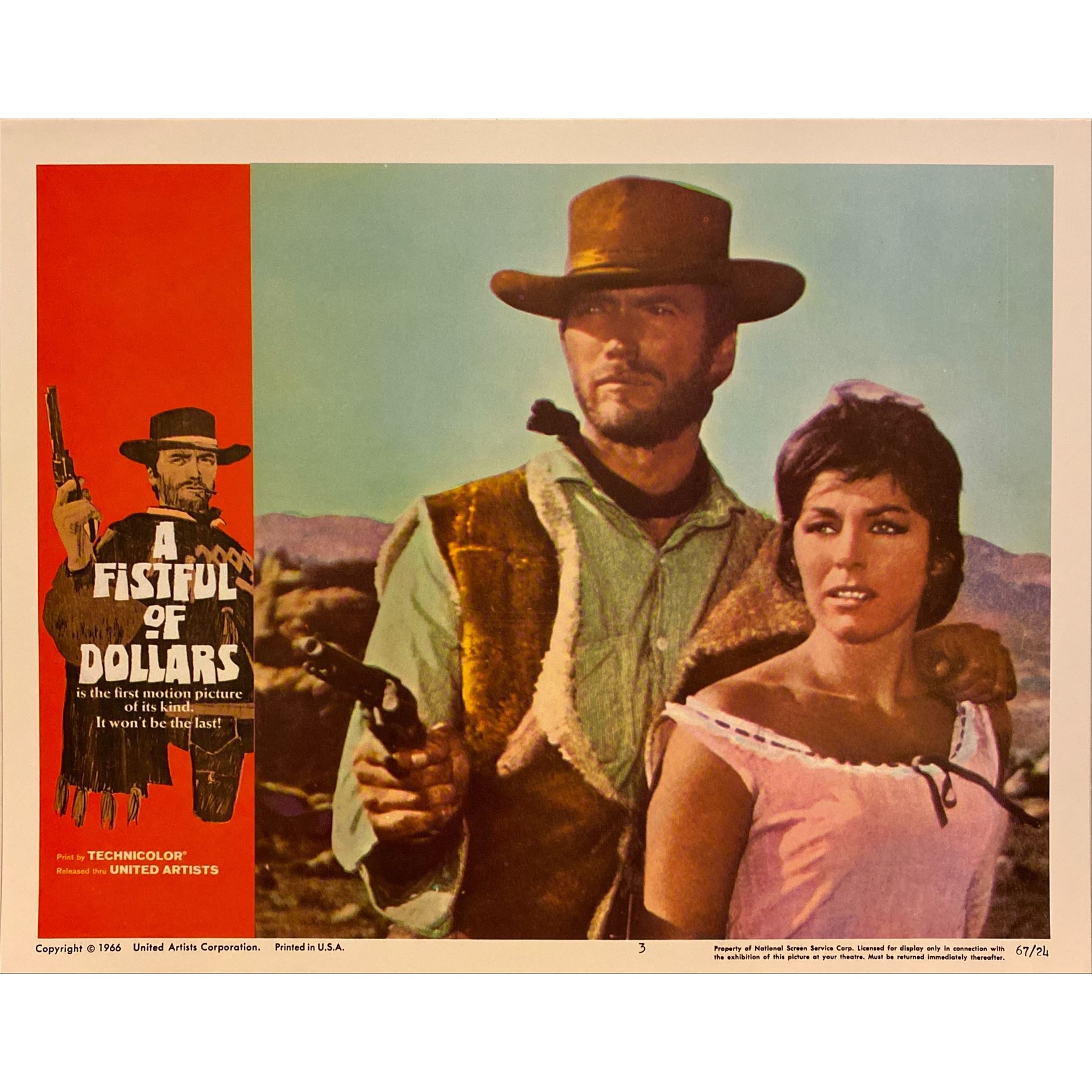 A Fistful of Dollars original 1966 vintage lobby card on heavy card stock. 11X14 Inches