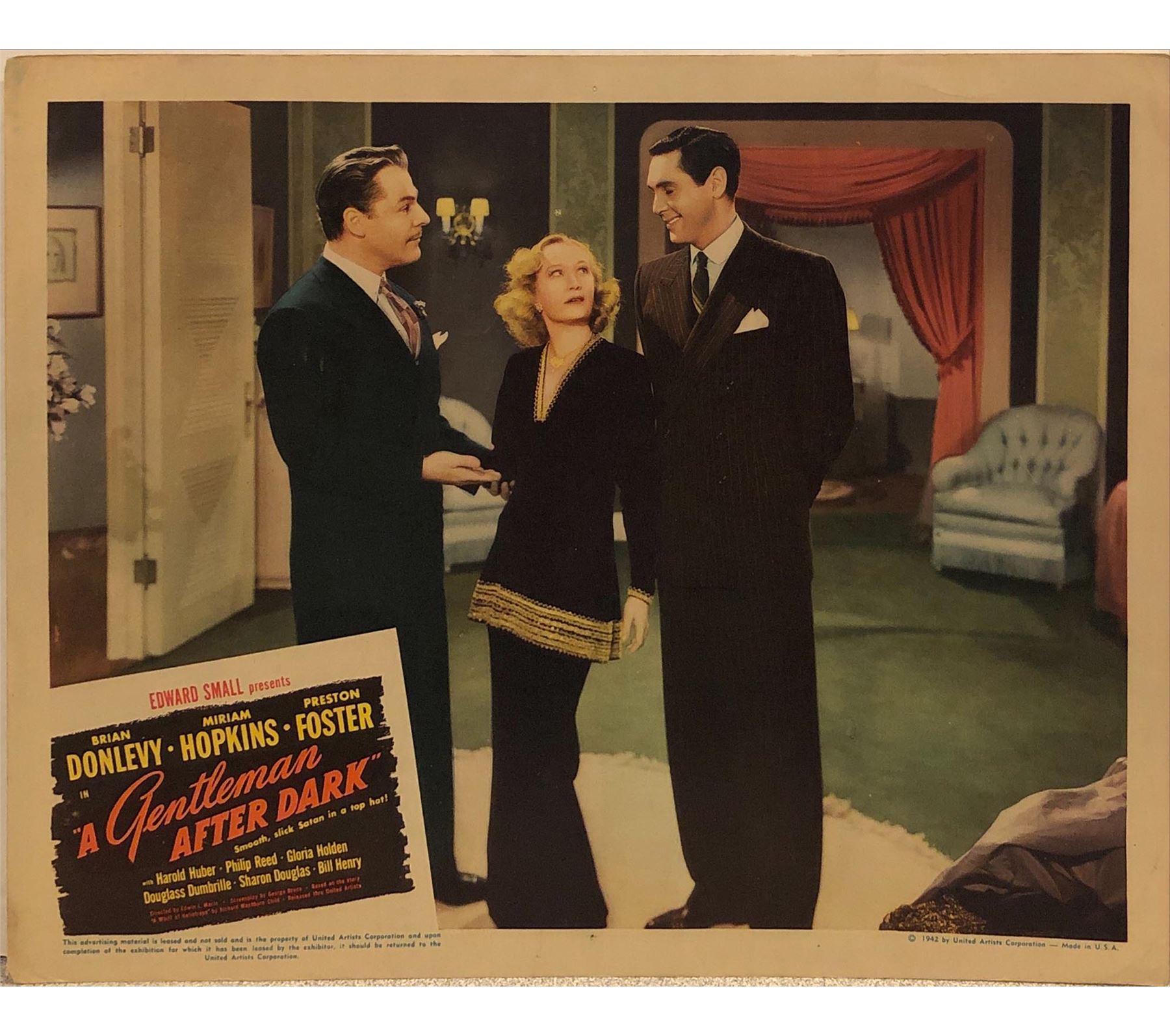 A Gentleman After Dark original 1942 vintage lobby card on heavy card stock. 11x14 inches