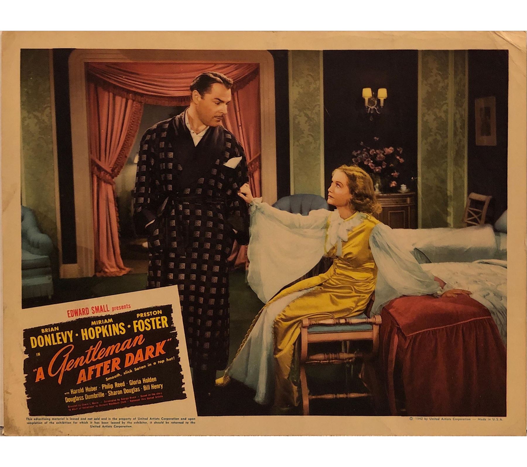 A Gentleman After Dark original 1942 vintage lobby card on heavy card stock. 11x14 inches