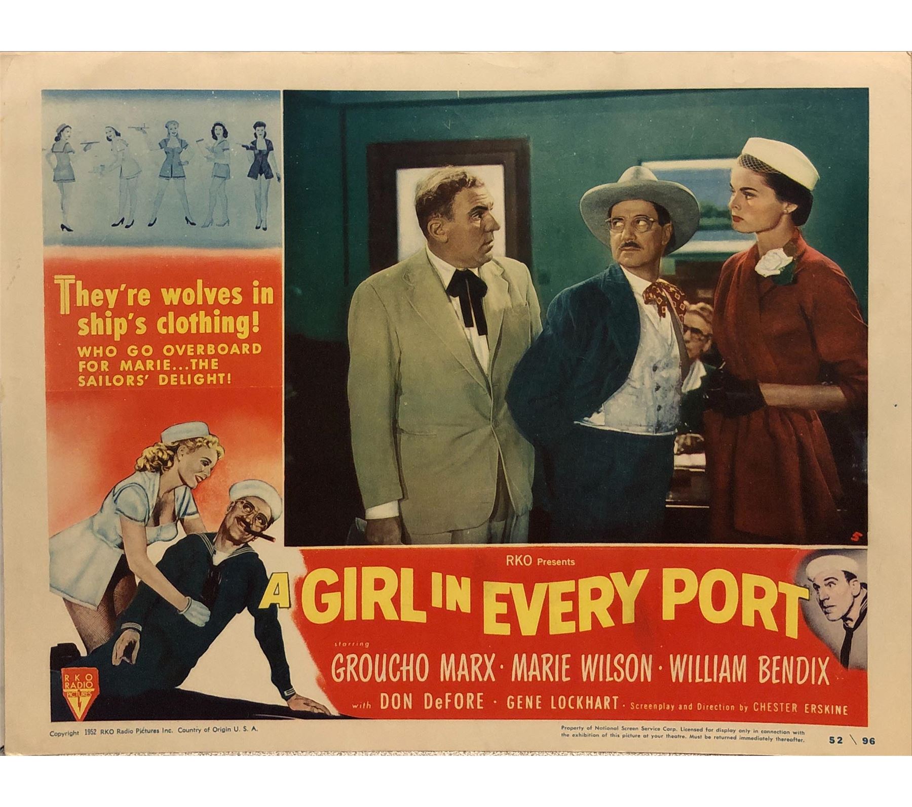 A Girl in Every Port original 1952 vintage lobby card on heavy card stock. 11x14 inches