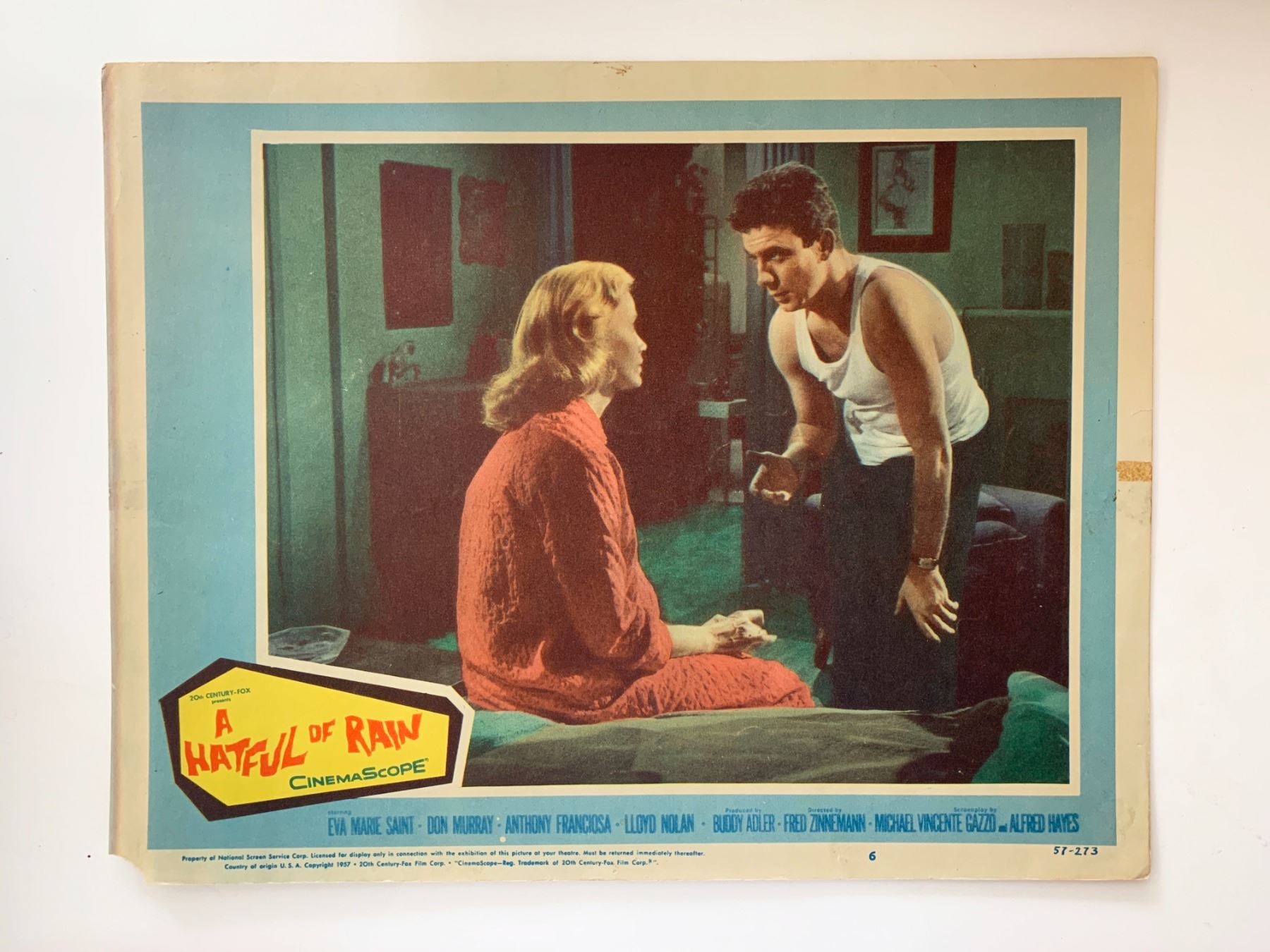A Hatful of Rain original 1957 vintage lobby card on heavy card stock. 11x14 inches
