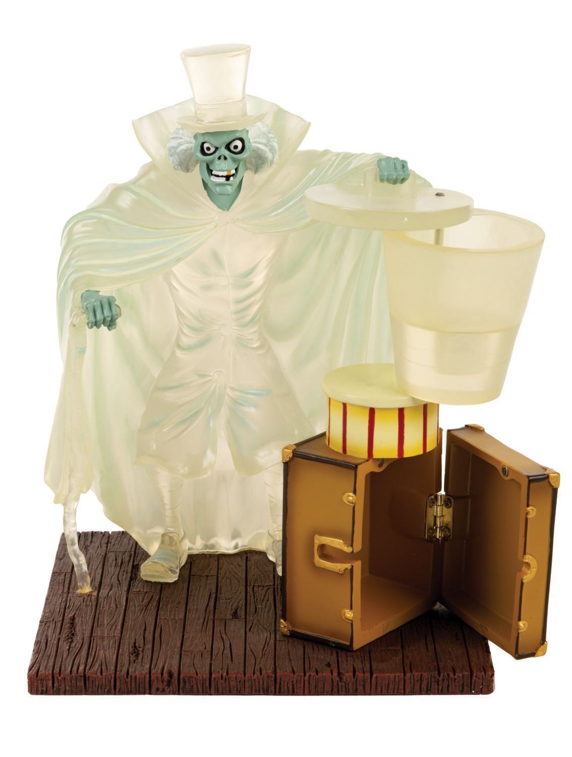 (Disneyland, 2009) A Haunted Mansion O-Pin House Hatbox Ghost Figure with glow-in-the-dark features. This figure was produced for the 40th anniversary of The Haunted Mansion at Disneyland in a limited-edition of 250 and includes (2) exclusive limited edition pins. Measuring 8" tall atop a 5.75"x6" base, the statue displays in fine condition, and comes in original fair-condition box.