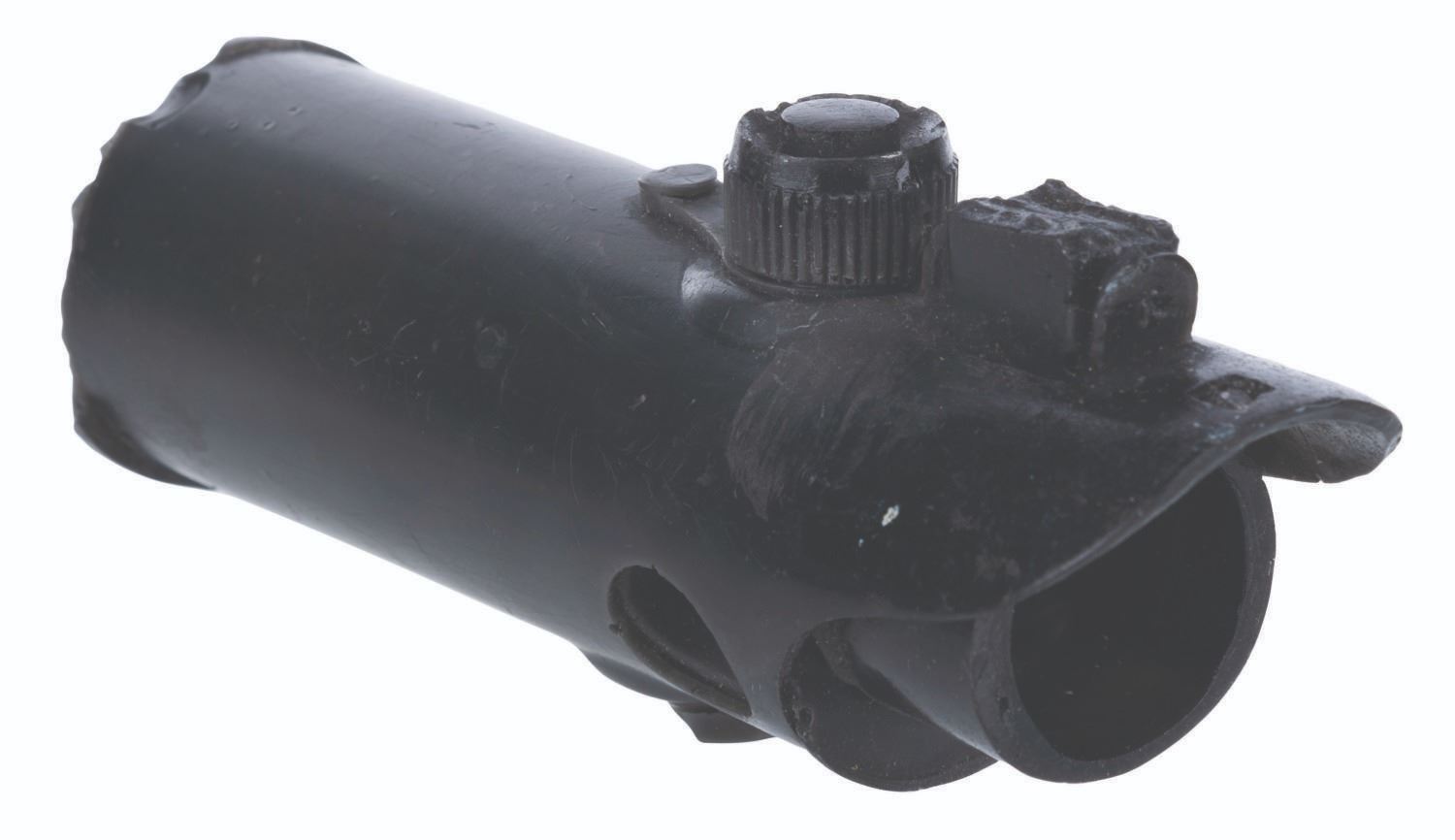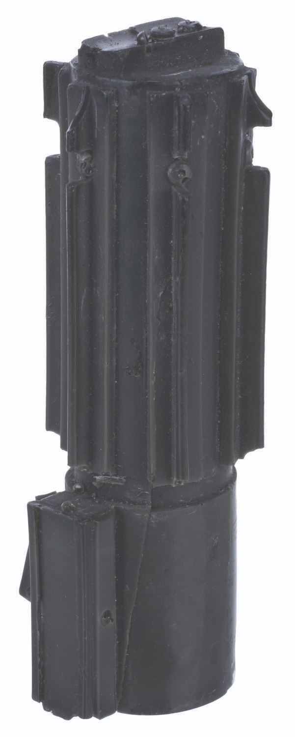 (Disney, 2015) A Luke Skywalker lightsaber hilt created during the production of "The Force Awakens.” Measuring 4.75” x 1.25” in diameter and 6” x 1.25” in diameter, the two-piece resin hilt is in good production-used condition with scuffs, scratches, and chips.