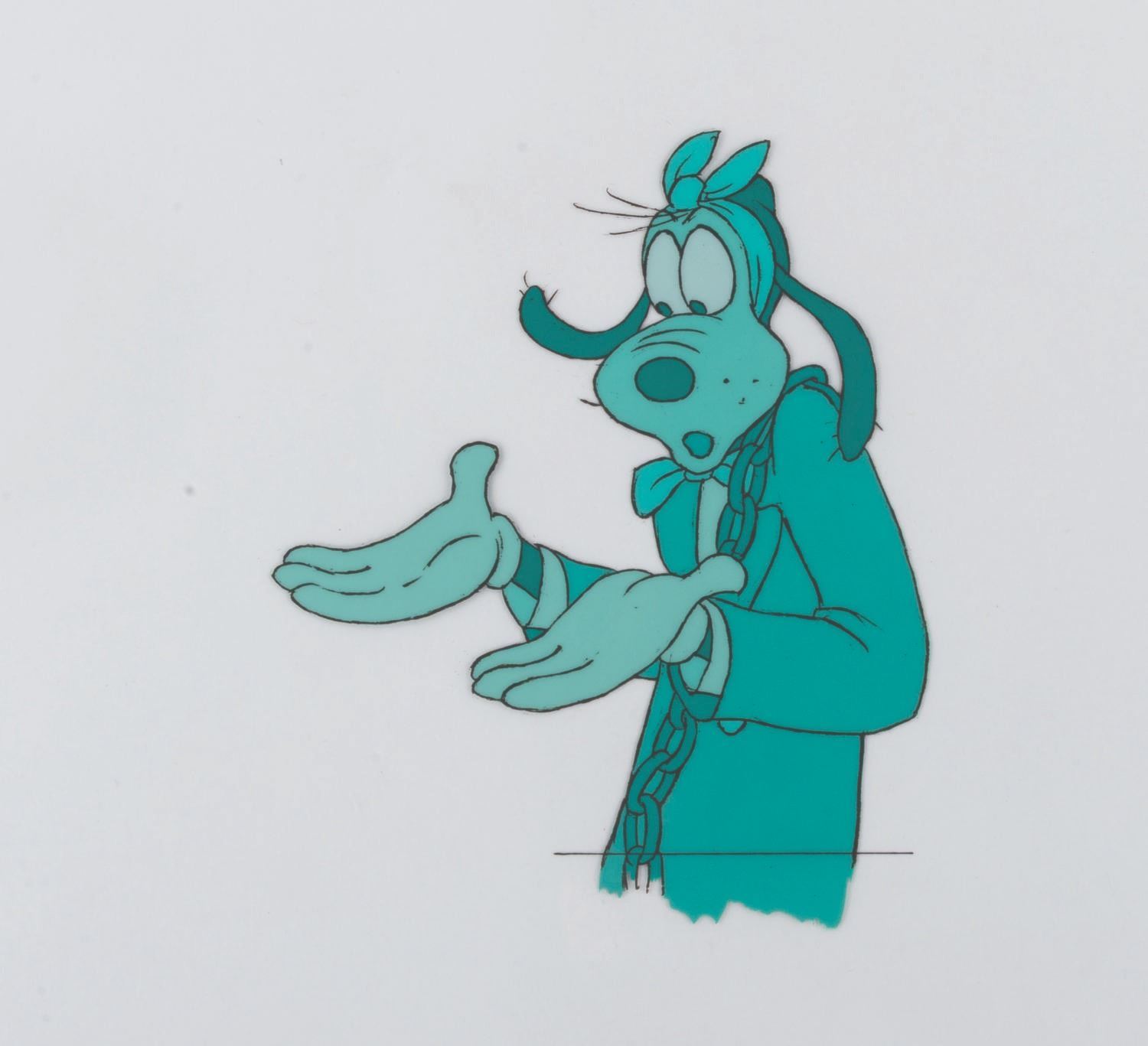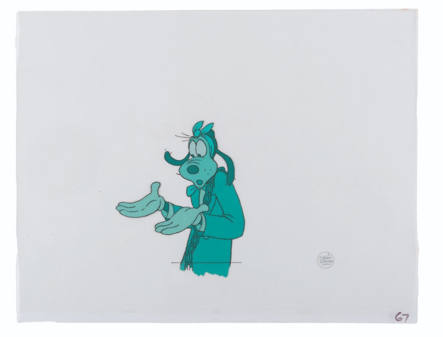 (Disney, 1983) An original production cel of Goofy as Jacob Marley from "Mickey's Christmas Carol." Goofy has an image size of 5.25" x 6" on a 12.5" x 16" cel. The cel is in fine condition.