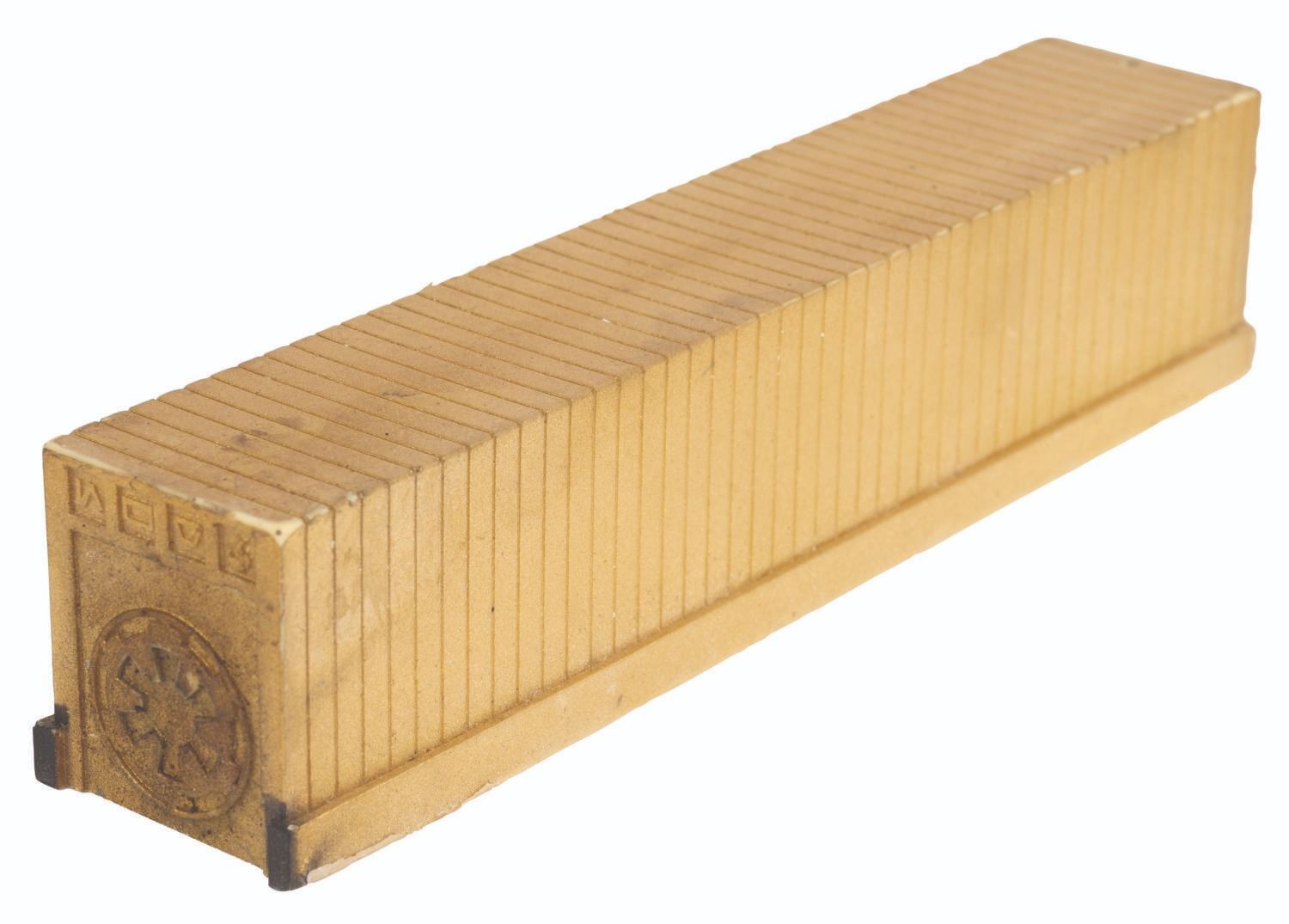 (Disney, 2022) A pair of Imperial Credit Ingot props from the Star Wars series "Andor.” Measuring 1.5” x 7.75” x 1.75” tall and 1.5” x 8.25” x 1.75” tall, the resin props display in good condition with light scratches and paint loss from production use.