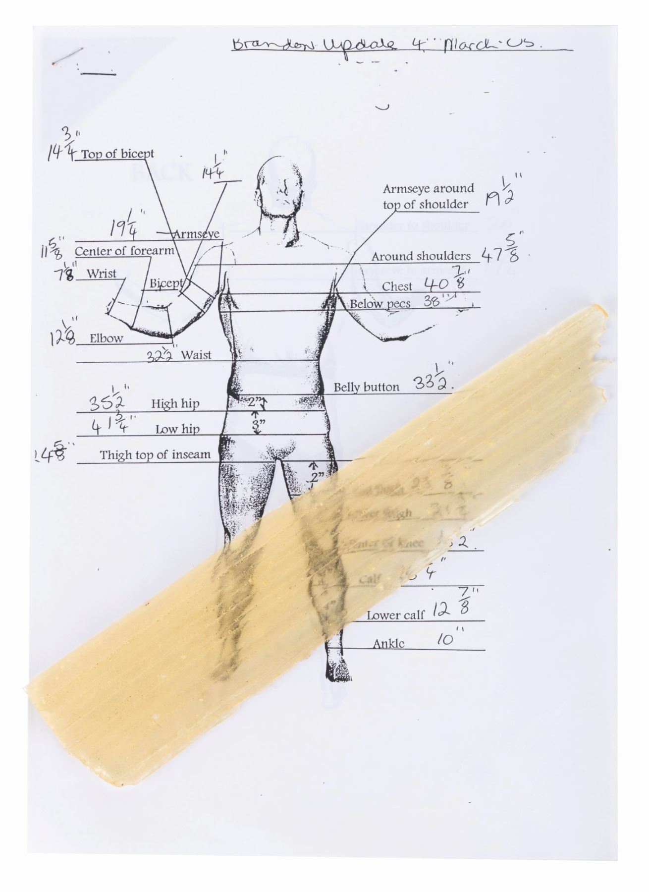 (Warner Bros., 2006) A Fortress of Solitude crystal prop from "Superman Returns,” starring Brandon Routh, and a two-page Costume Department photocopy of Routh’s updated measurements. Measuring 9.75” x 2” and 0.25” thick, the resin crystal is in very good production-used condition with light discoloration from age, and the photocopy measuring 8.5” x 11” is in very good condition with light edge wear and creasing.