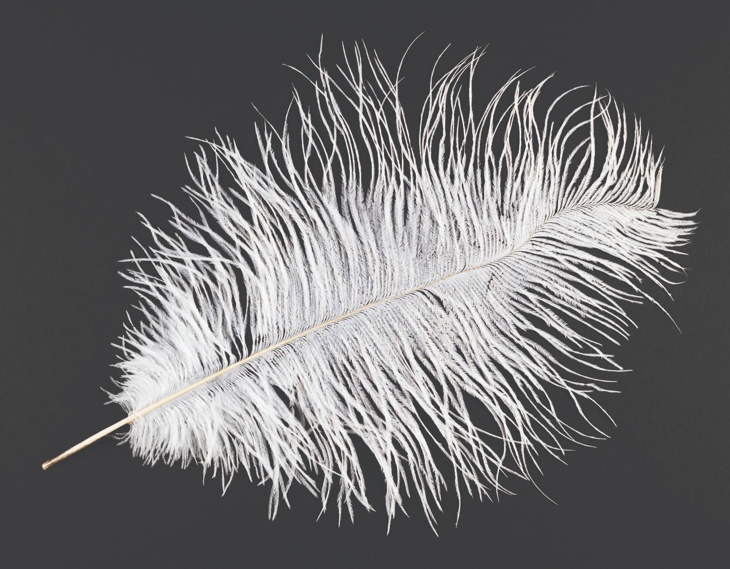 (Warner Bros., 2001) A prop feather from production of "Harry Potter and the Sorcerer's Stone.” While learning the Wingardium Leviosa levitating spell, Harry and his classmates each practice with two of these ostrich feathers. Measuring 9.5” x 14”, the prop is in very good condition with typical light wear from production use.