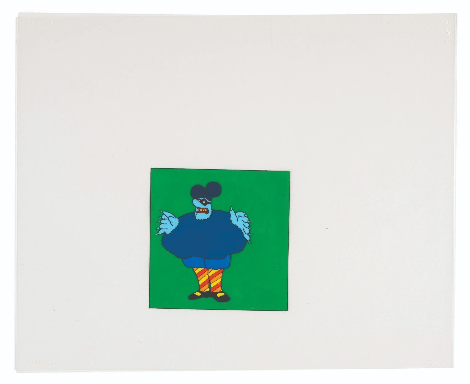 (United Artists, 1968) An original hand-painted production cel of a Blue Meanie from "Yellow Submarine.” The multi-layer cel has been trimmed to 8.5” x 10.5” with a character image size of 3.5” x 3.5”, and is in very good condition with pinholes in the corners which do not affect the image.