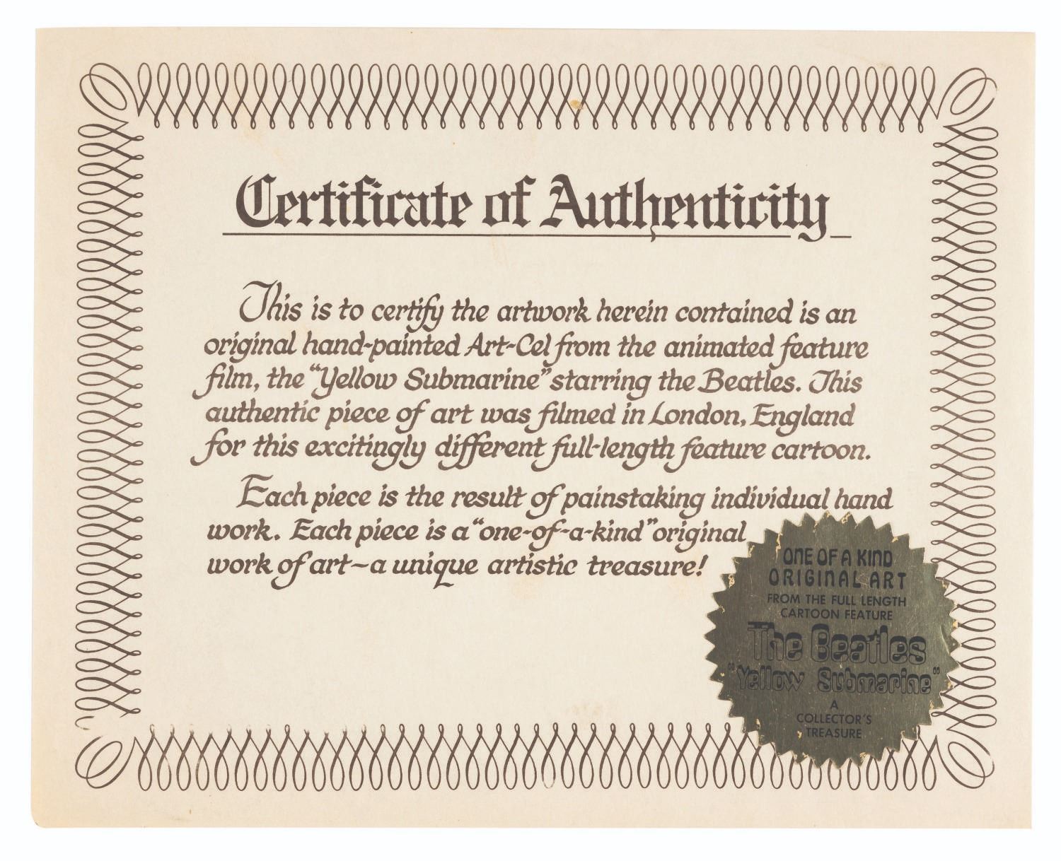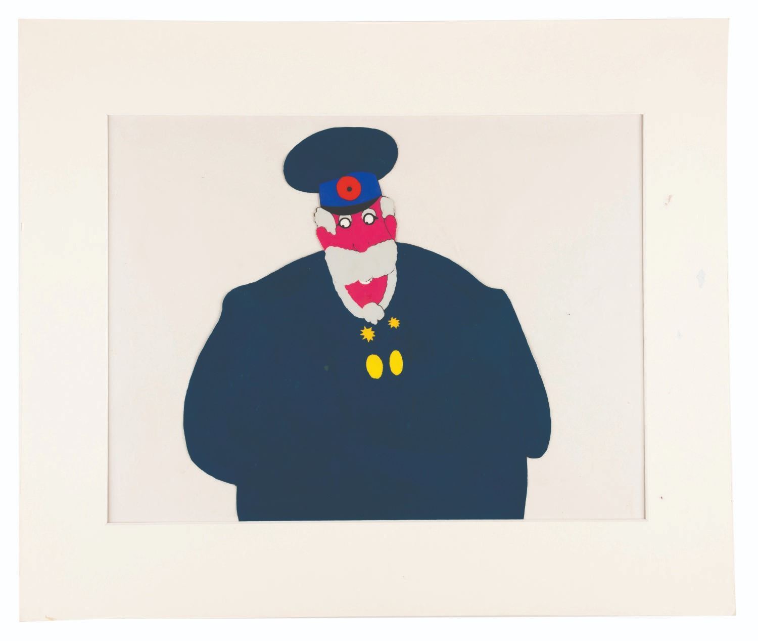 (United Artists, 1968) An original hand-painted production cel of Old Fred from The Beatles animated film "Yellow Submarine.” With a character image size measuring 10.5” x 9.75” on a 10.75” x 14.25” visible cel in a 15.75” x 18.75” matte, the cel displays in good condition with light scuffs and warping, and near total line loss.