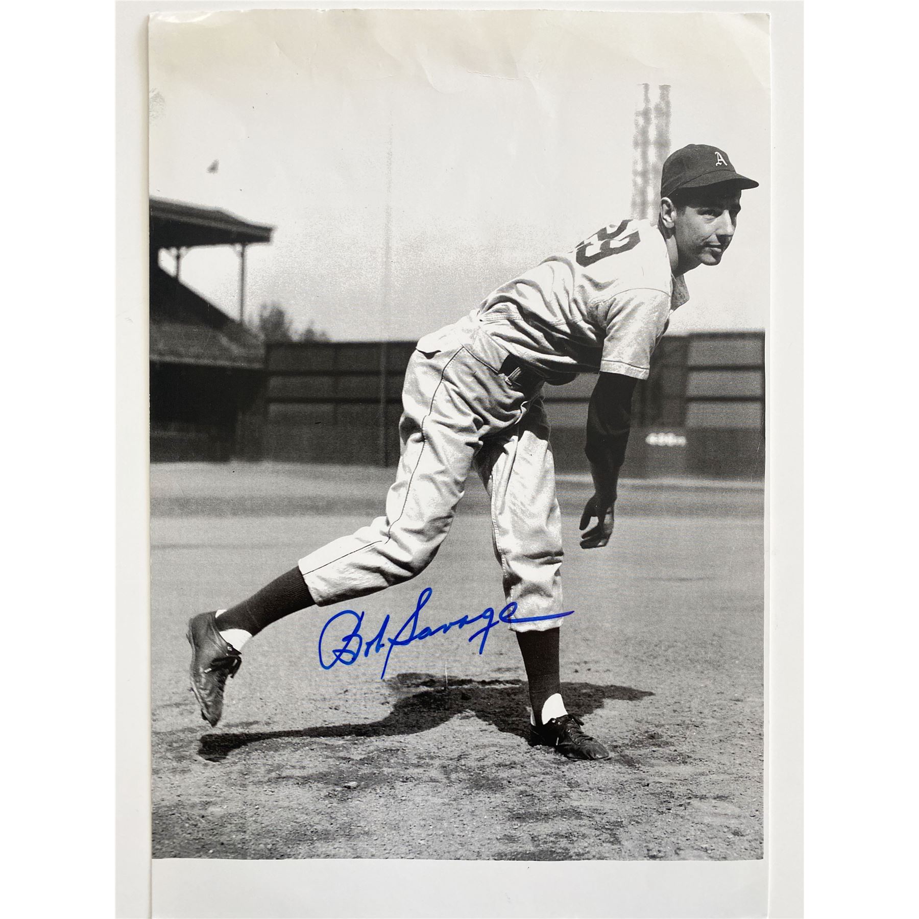 A's baseball player Bob Savage signed photo. 8 x 10 inches.