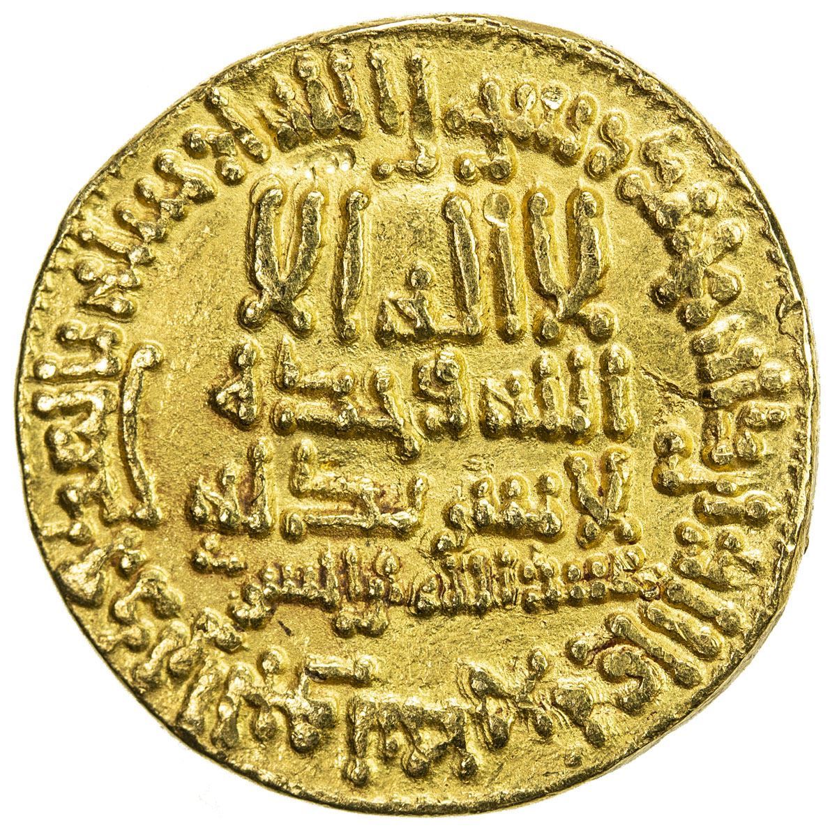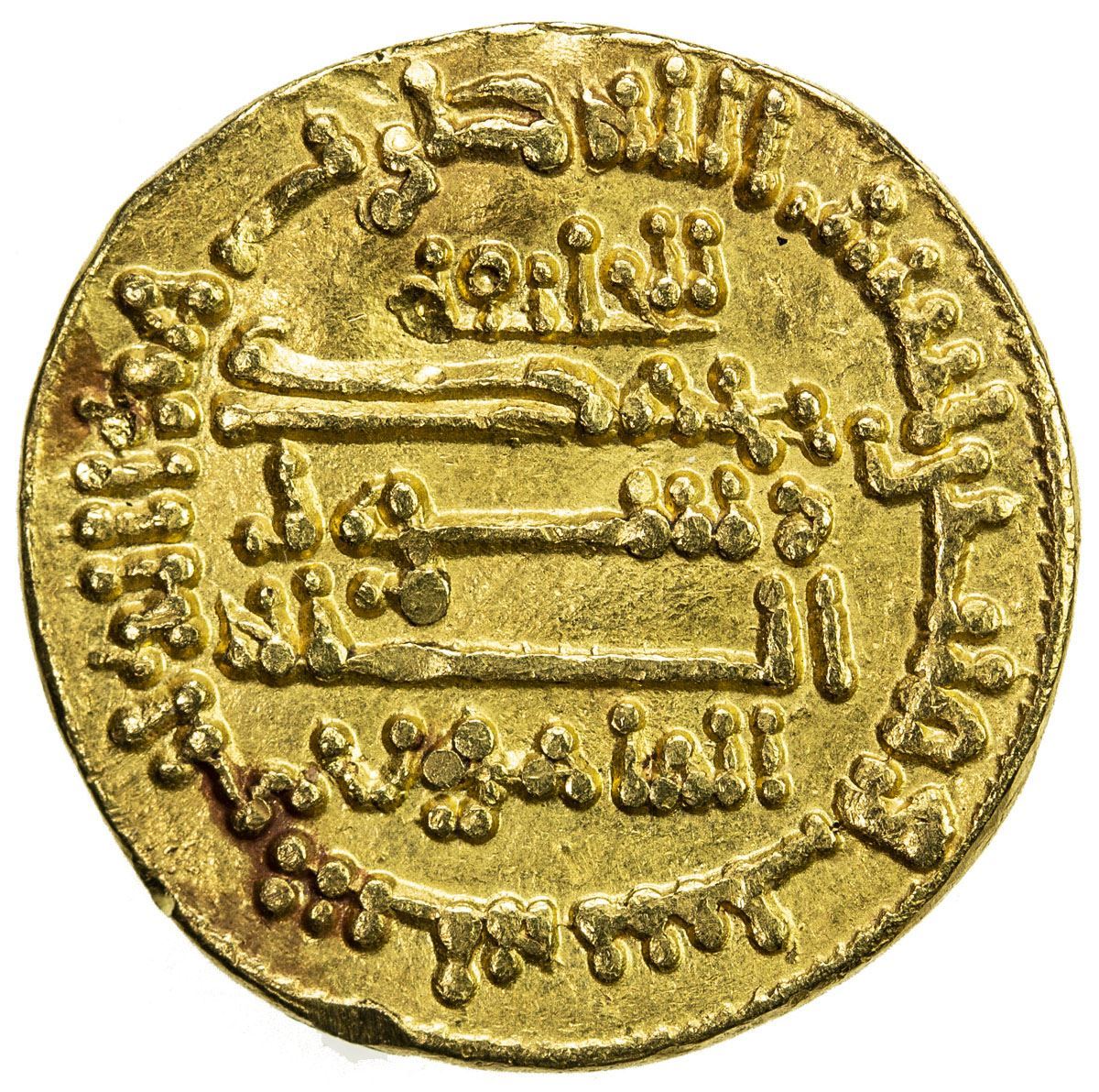 ABBASID: al-Ma 'mun, 810-833, AV dinar (4.23g), NM (Egypt), AH206, A-222.9, Bernardi-96, citing the governor of Egypt, 'Ubayd Allah b. al-Sari, below obverse, and the caliph al-Ma 'mun on the reverse, EF.