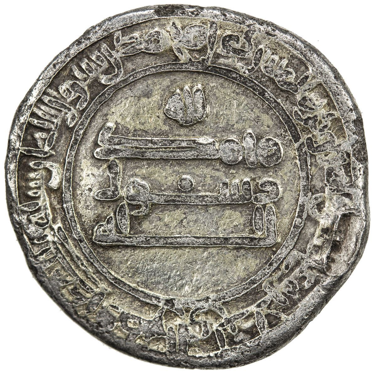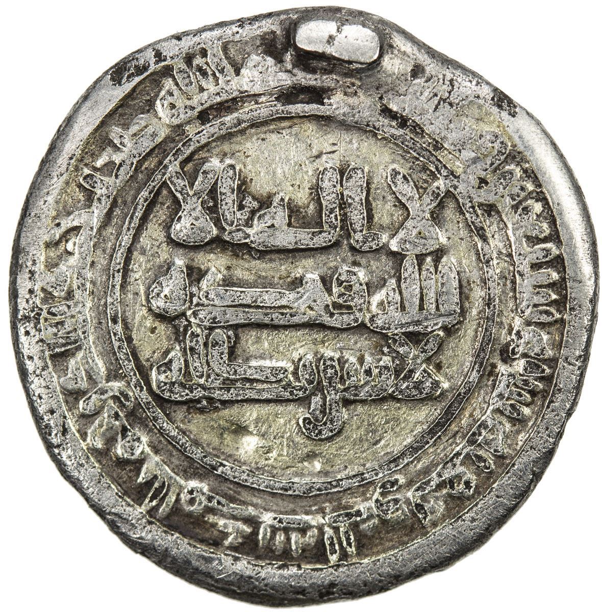ABBASID: temp. al-Mu 'tamid, 870-892, AR donative dirham (2.55g), al-Muwaffaqiya, AH270, A-240Z, totally anonymous, mount removed, 2nd known example of this important type, VF, RRR. Al-Muwaffaqiya was a military camp set up by the Abbasid army for their defeat of the Zanj Rebellion in southern Iraq. Normal Abbasid gold and silver were struck there in AH268-270, but the camp was abandoned after the defeat of the Zanj, which occurred early in 271. This is the second reported example of the anonymous donative issue of al-Muwaffaqiya (the other example, dated AH269, is in the Tübingen collection).