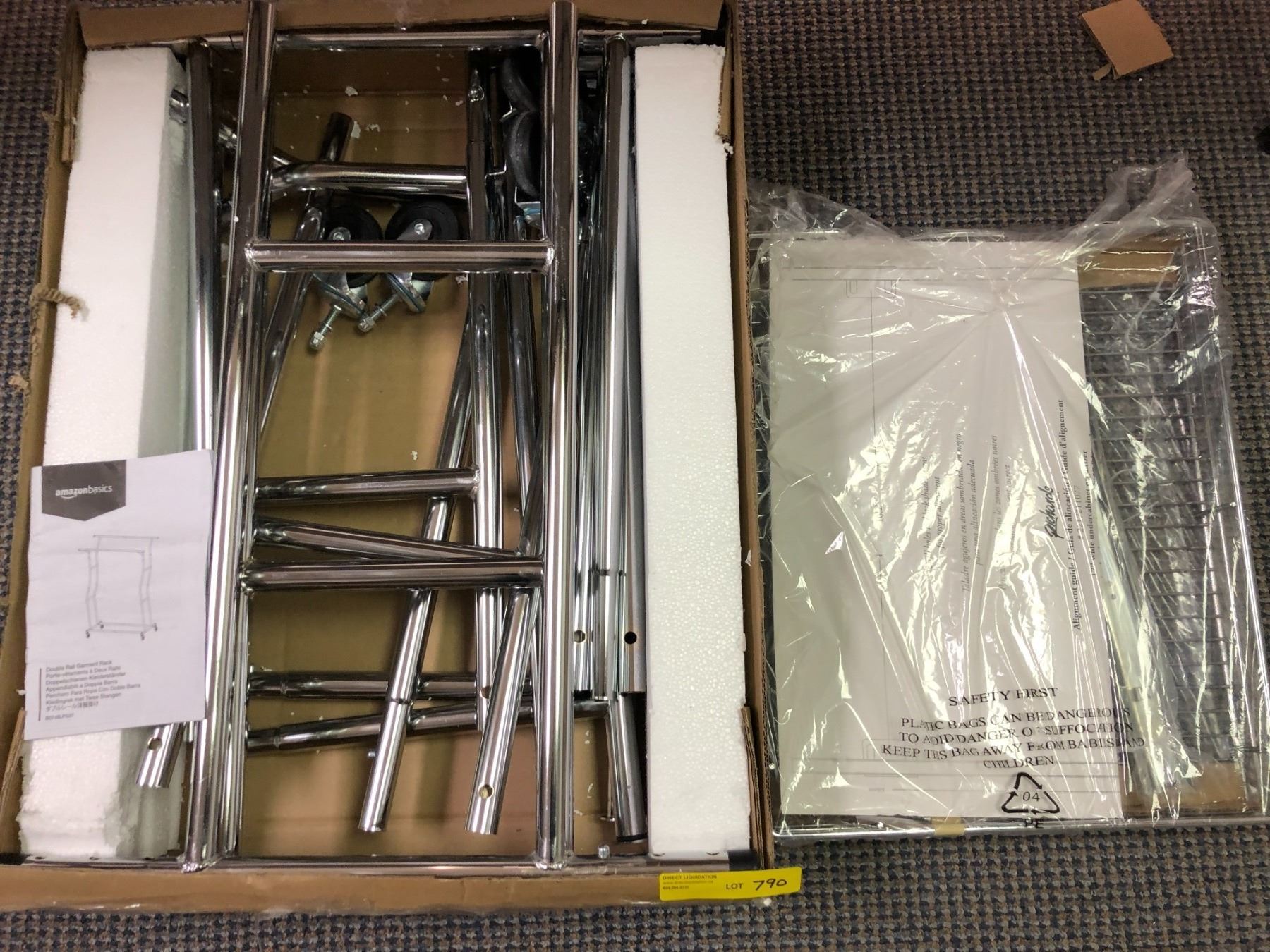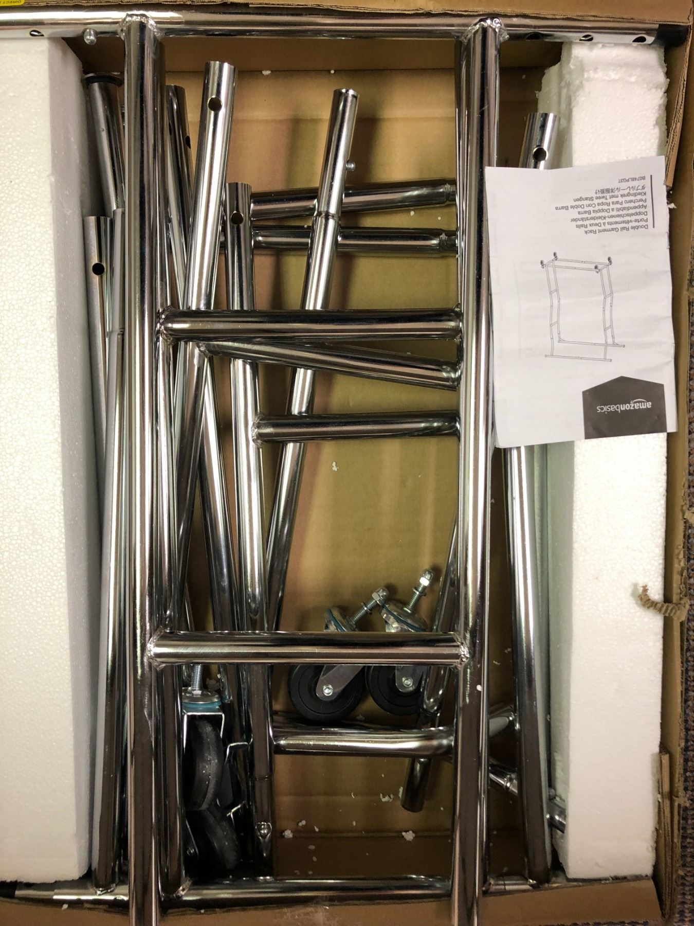 AMAZON Basics - Double Rail Garment Rack - Chrome with a Pichards Rollout Cabinet Drawer