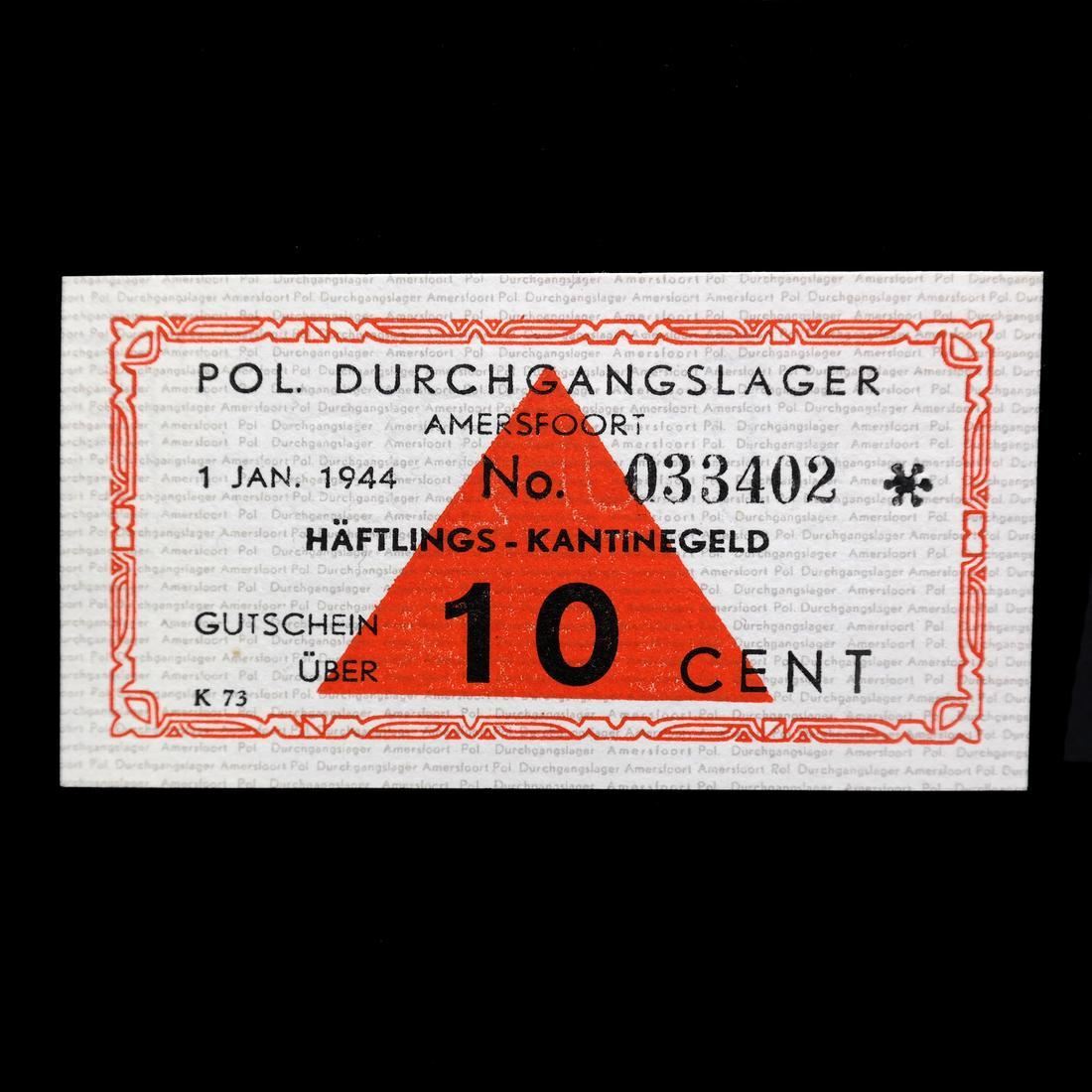 Pol. Durchgangslager / Amersfoort / 1. Jan. 1944 / Hftlings-Kantinegeld / Gutschen ber 10c note with grey underprinting, star after the serial number and JUTE watermark, Uncirculated.