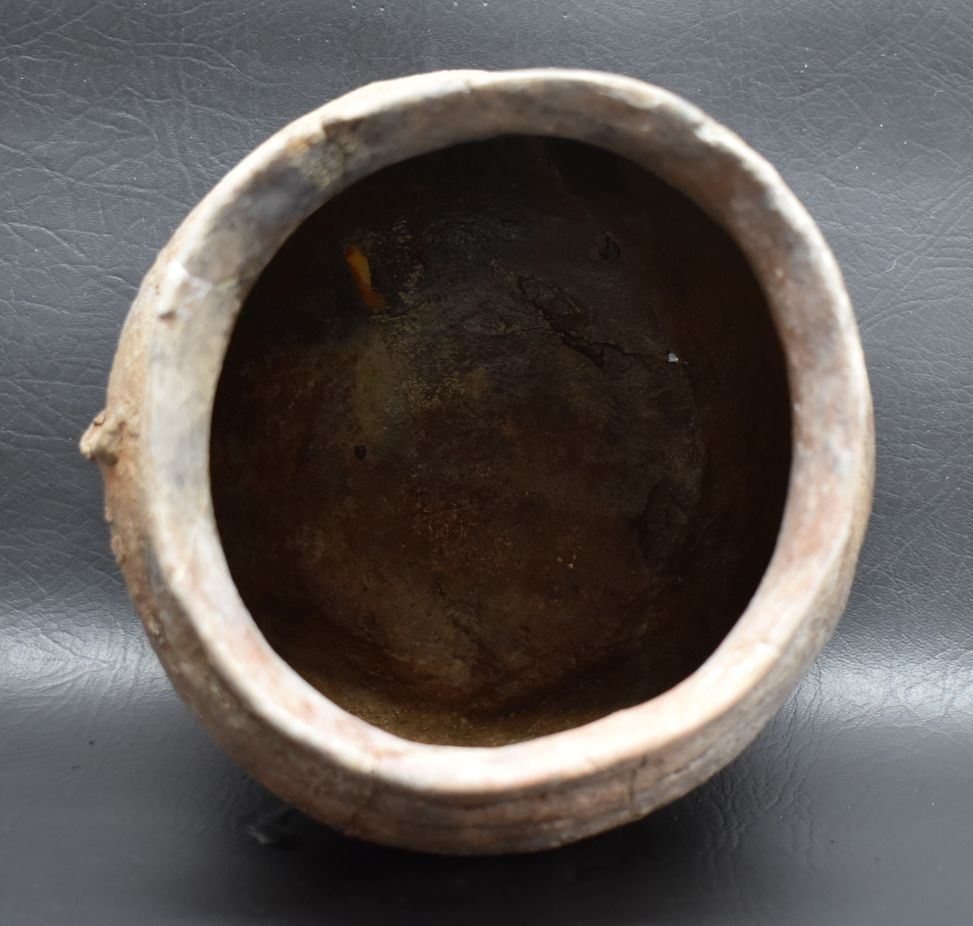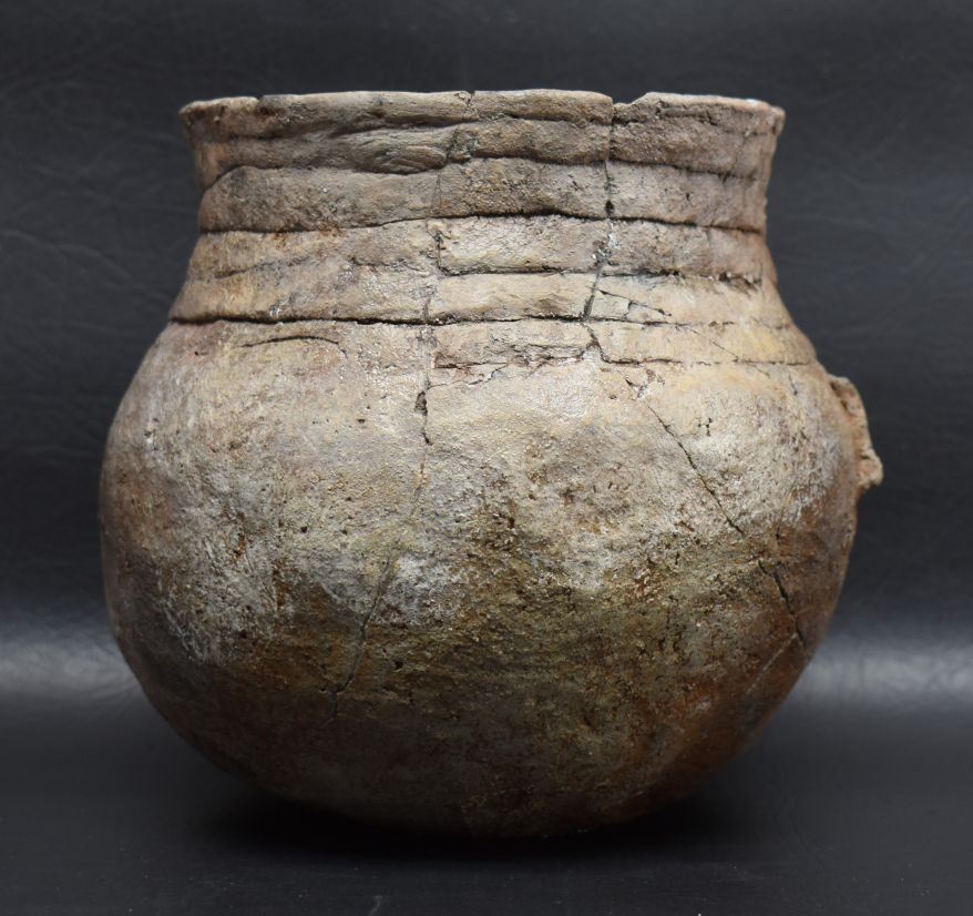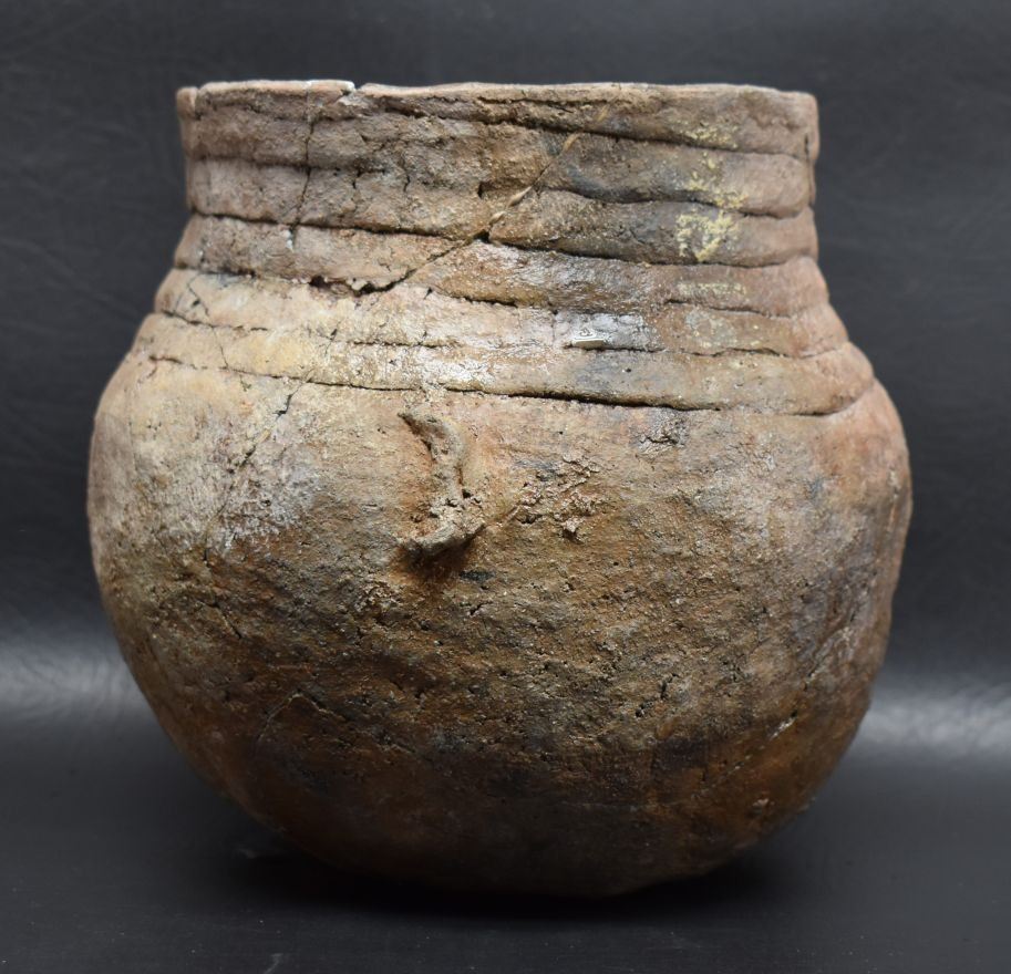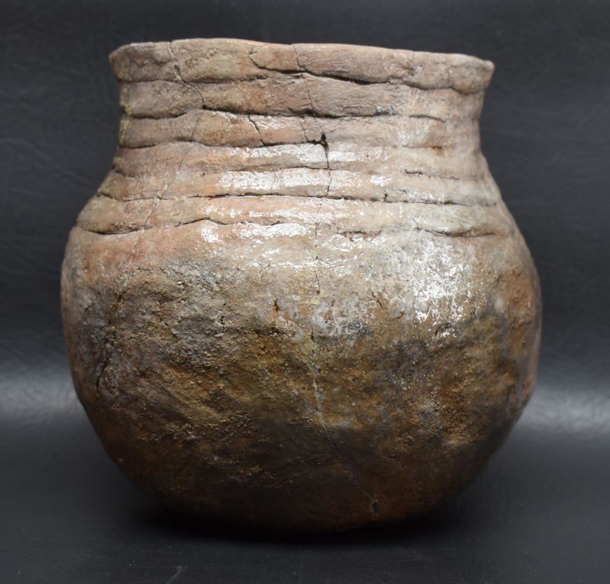 Prehistoric Anasazi Indian. Hand coiled pottery cooking jar 7'' x 7'' has restoration