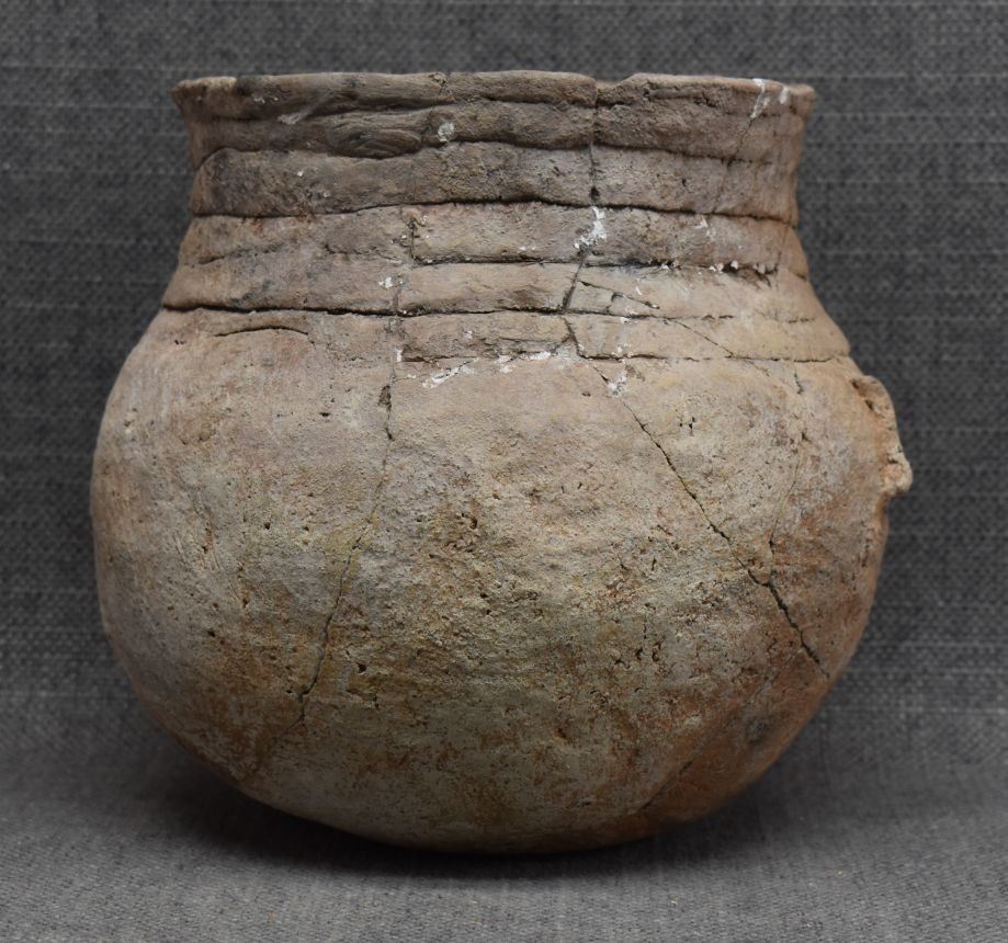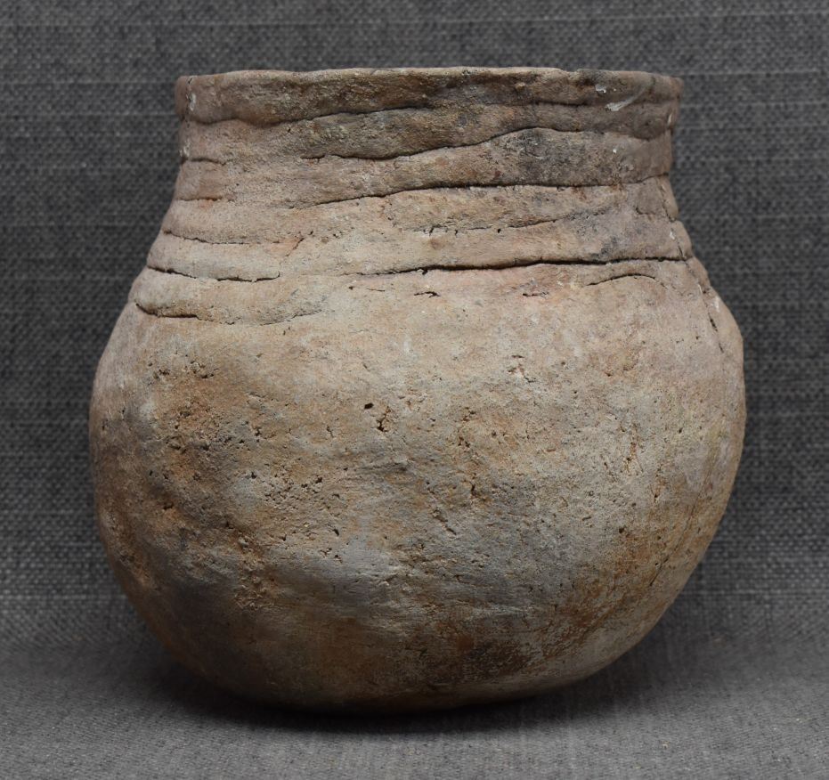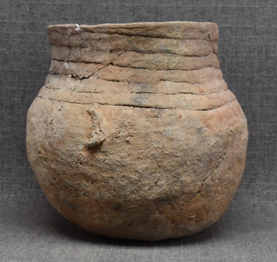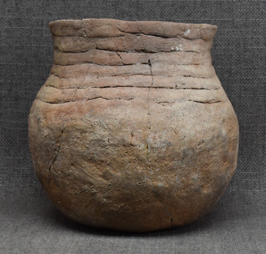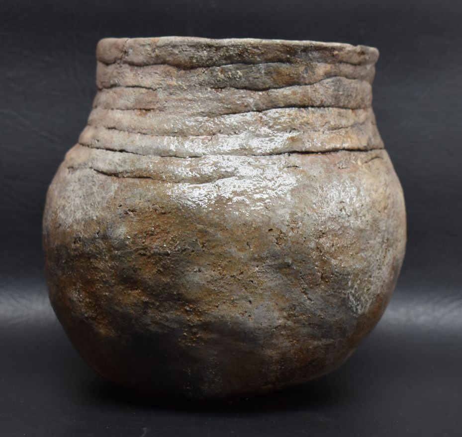 Prehistoric Anasazi Indian. Hand coiled pottery cooking jar 7'' x 7'' has restoration