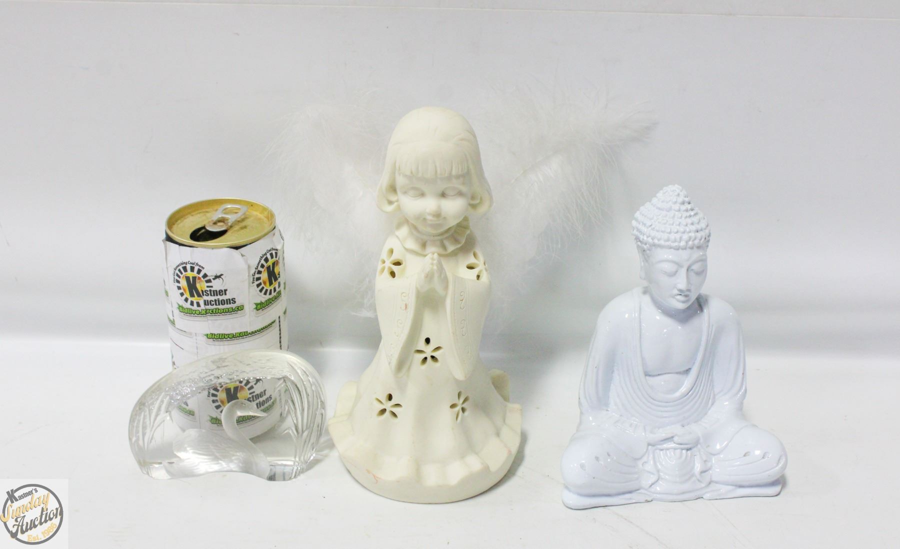 ANGEL STATUE. CERAMIC BUDDHA. CRYSTAL SWAN
