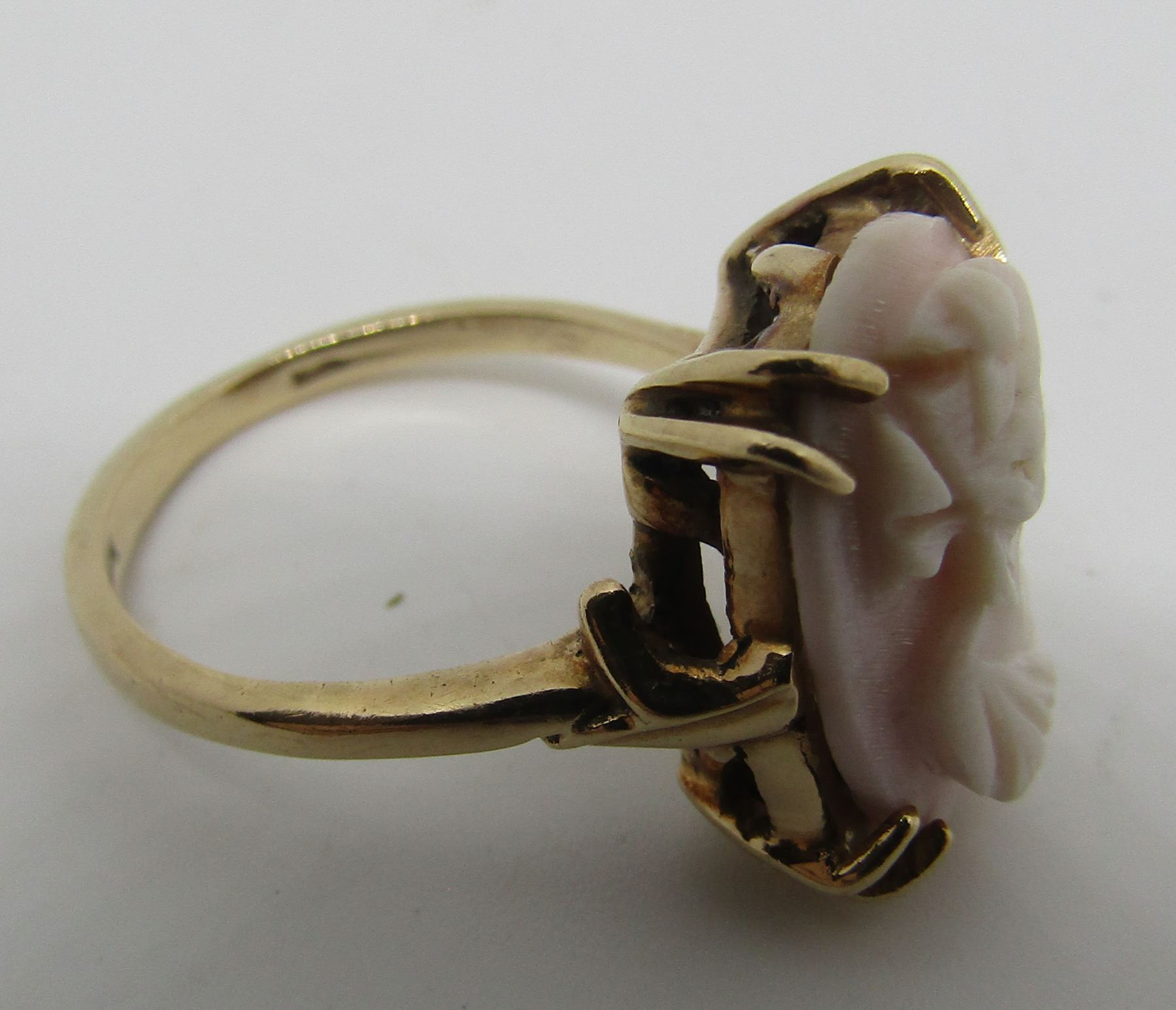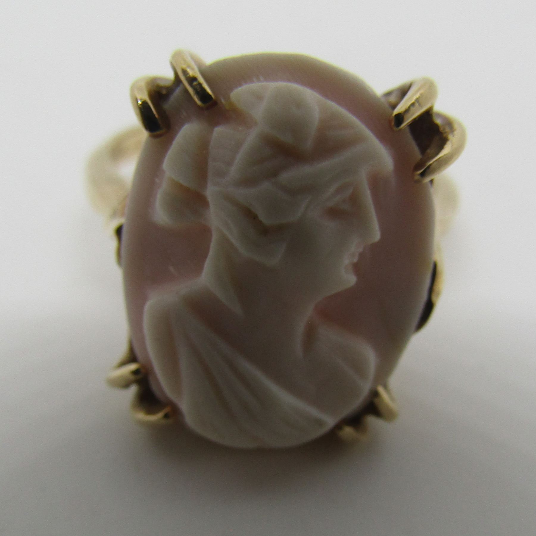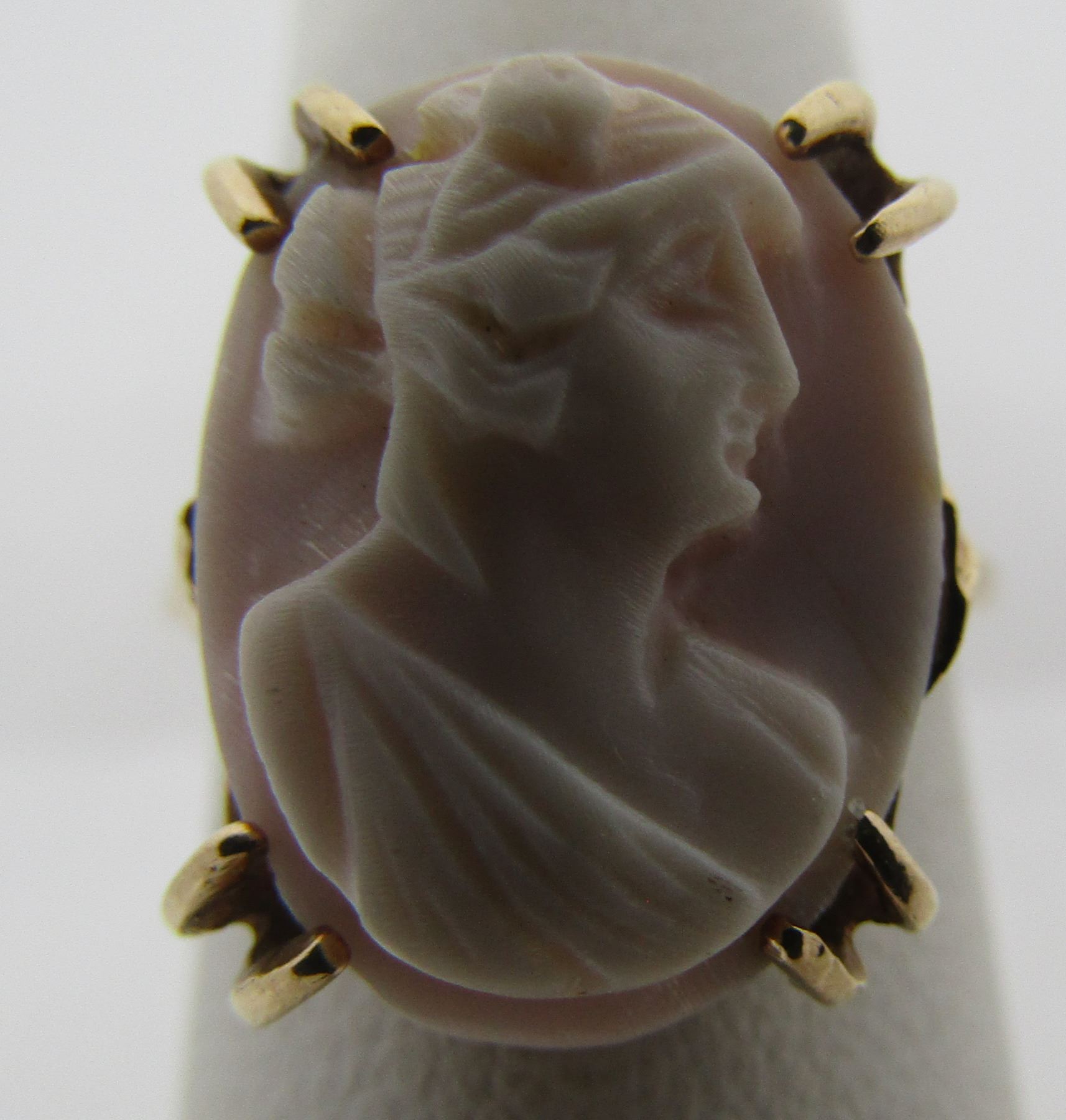 VINTAGE ESTATE TESTED "14K". 12MM WIDE BY 16MM LONG. 14KT YELLOW SIZE 6. WEIGHS 5.1GRAMS. EXCELLENT USED CONDITION, PIN WORKS FINE. USA SHIPPING $5.