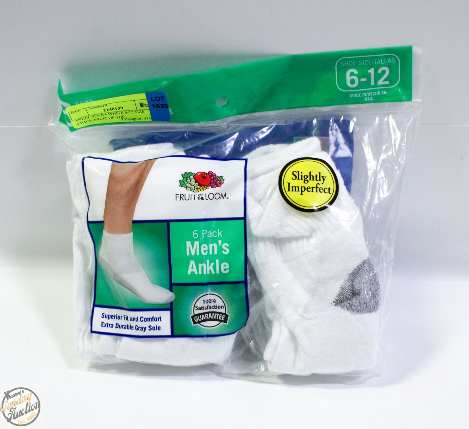 ANKLE SOCKS WHITE 6-12 SIZE 6-PACK FRUIT OF THE