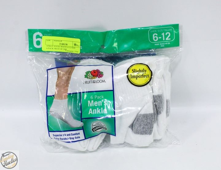 ANKLE SOCKS WHITE 6-12 SIZE 6-PACK FRUIT OF THE