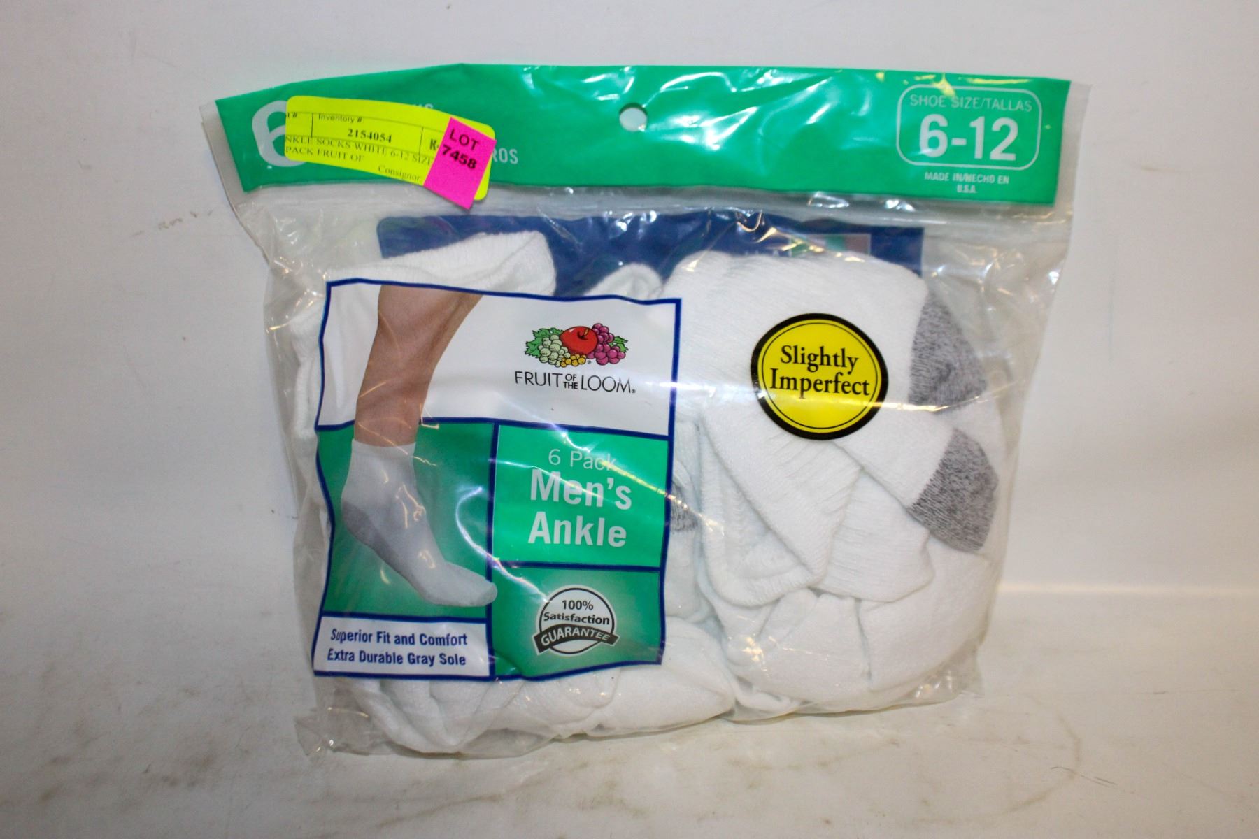 ANKLE SOCKS WHITE 6-12 SIZE 6-PACK FRUIT OF