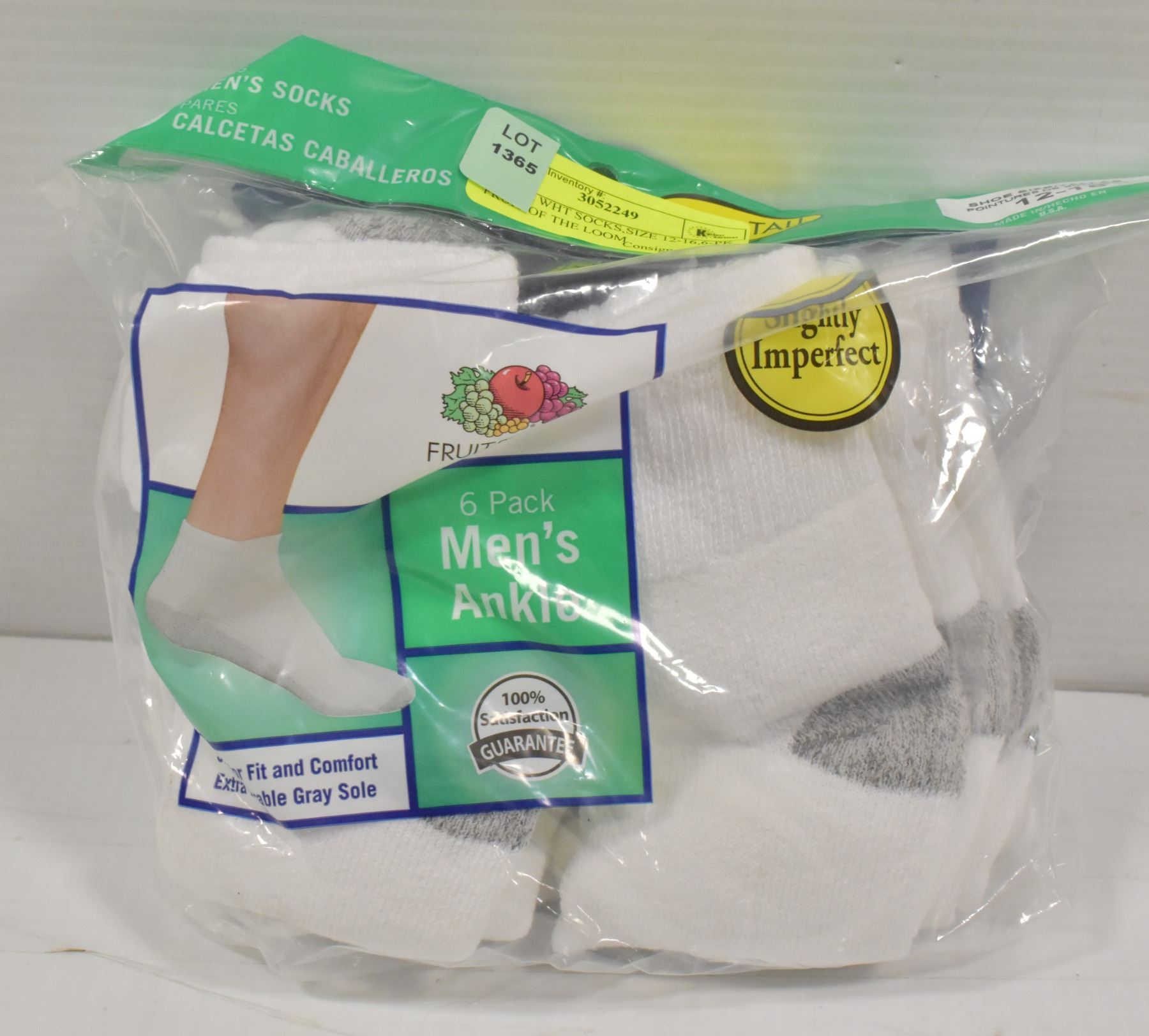 ANKLE WHITE SOCKS,SIZE 12-16,6PK FRUIT OF THE LOOM