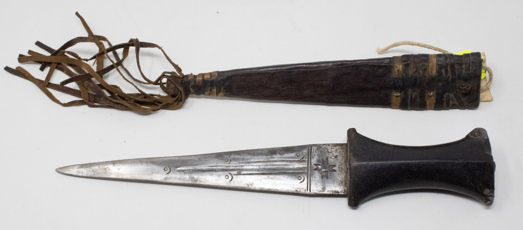 ANTIQUE AFRICAN DAGGER W LEATHER SHEATH