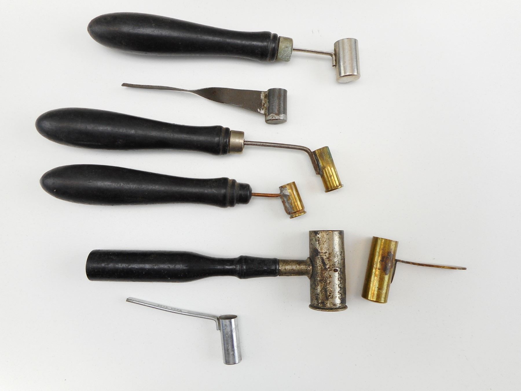 ANTIQUE BLACK POWDER MEASURES , 7 ASSORTED ANTIQUE BLACK POWDER MEASURES