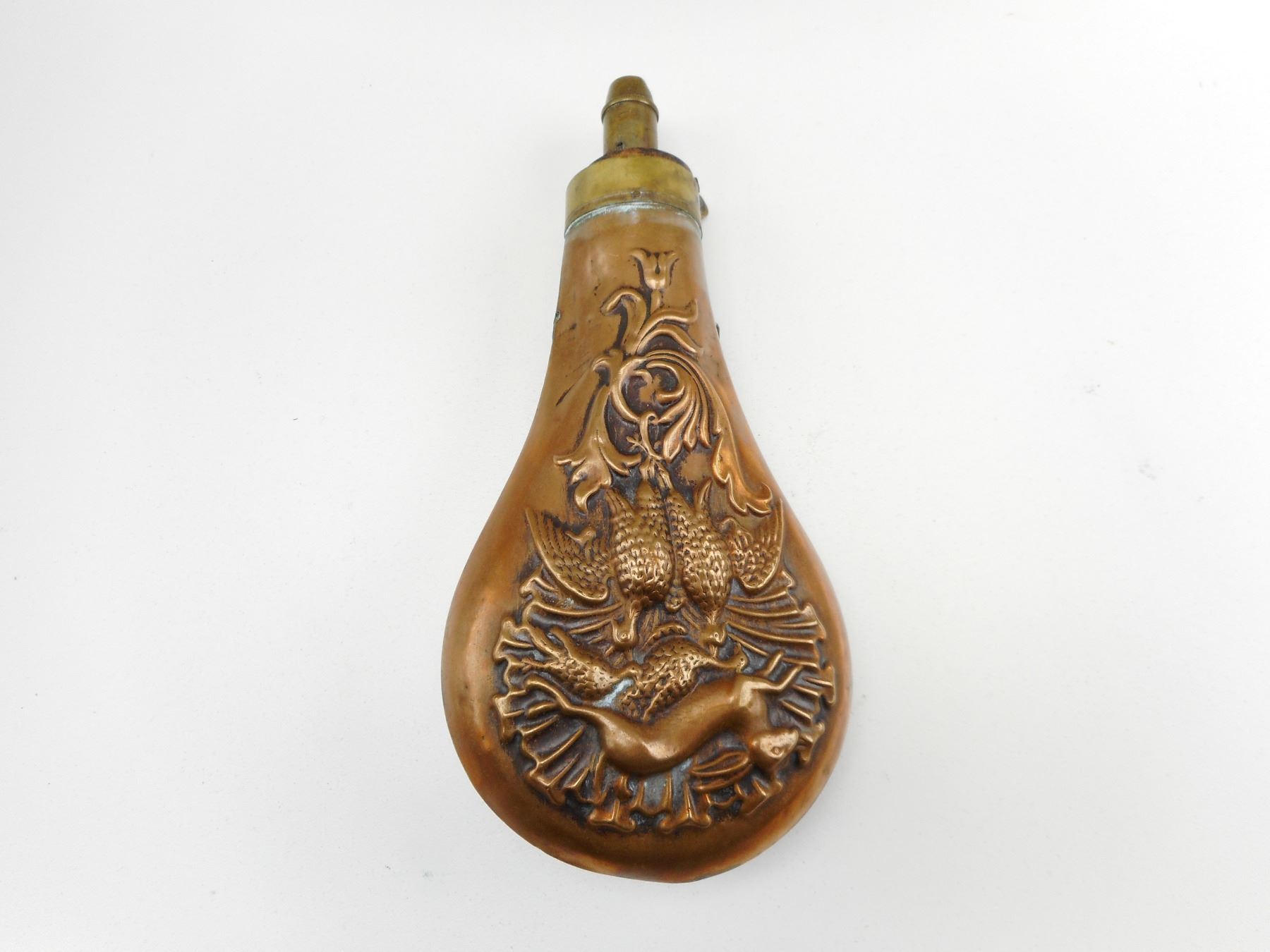 ANTIQUE BRASS BLACK POWDER FLASK , ANTIQUE BRASS BLACK POWDER FLASK