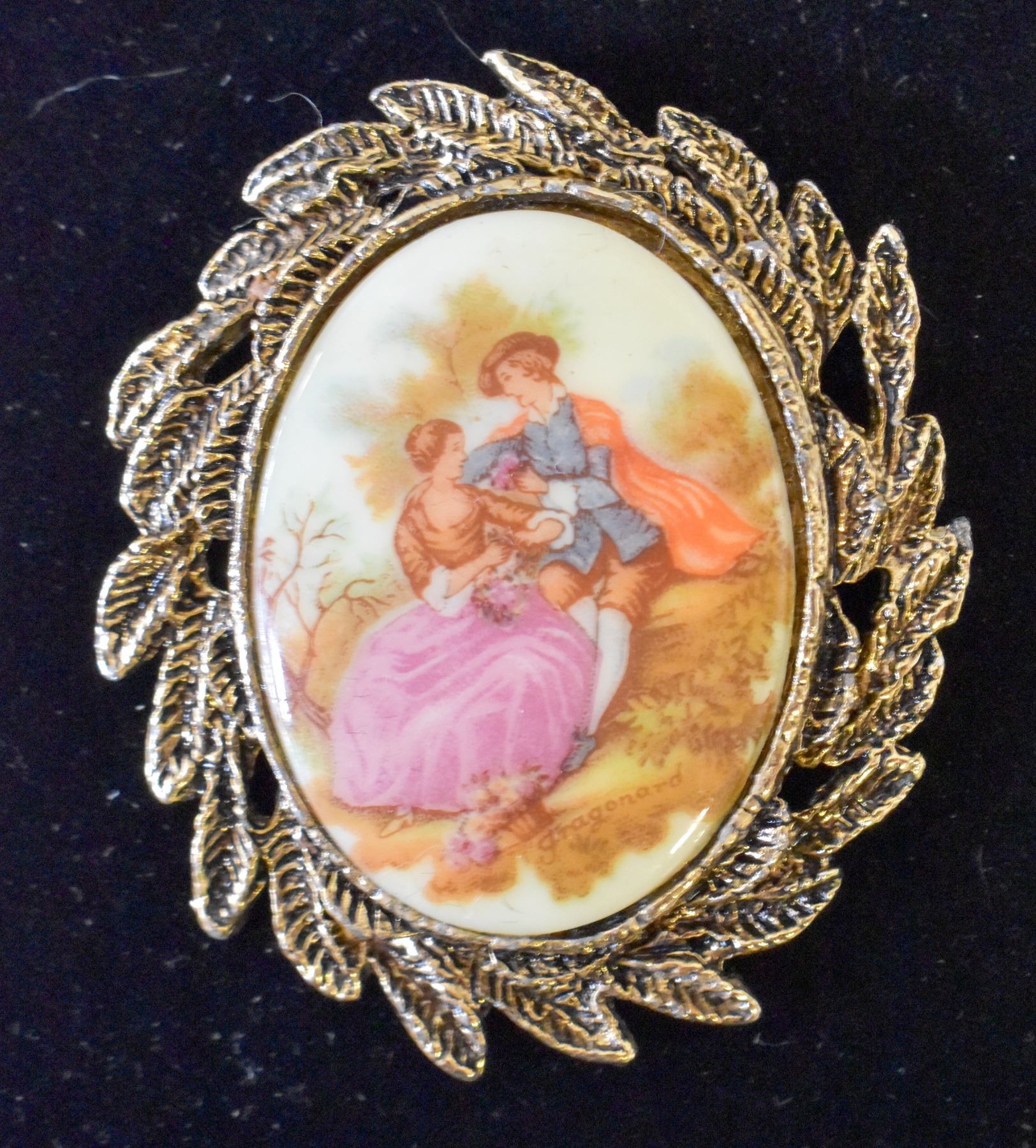 ANTIQUE BROOCH PENDANT WITH LILAC LADY DESIGN