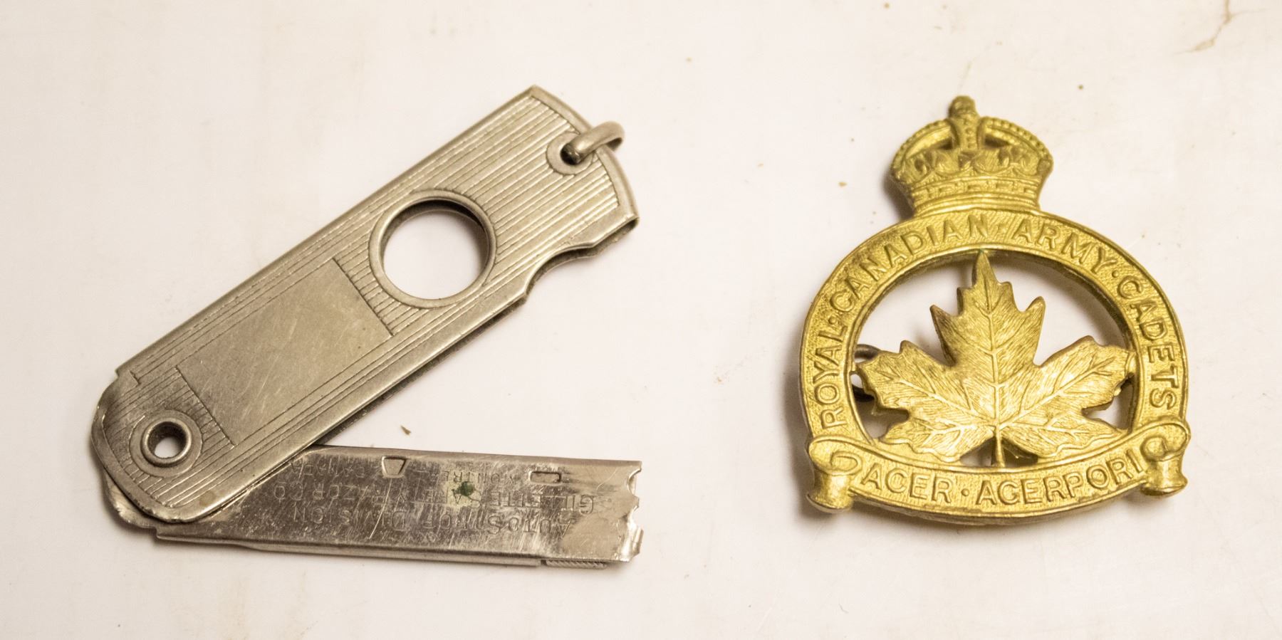 ANTIQUE CADET BADGE AND TOBACCO CUTTER