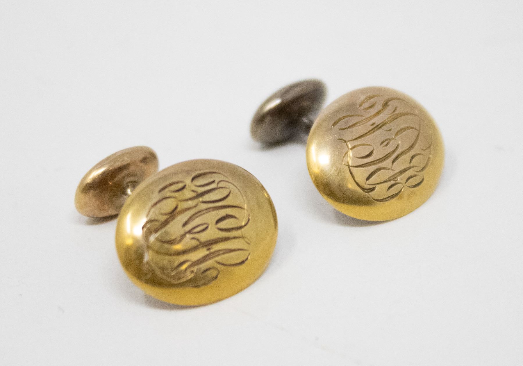 ANTIQUE GOLD CUFFLINKS ENGRAVED