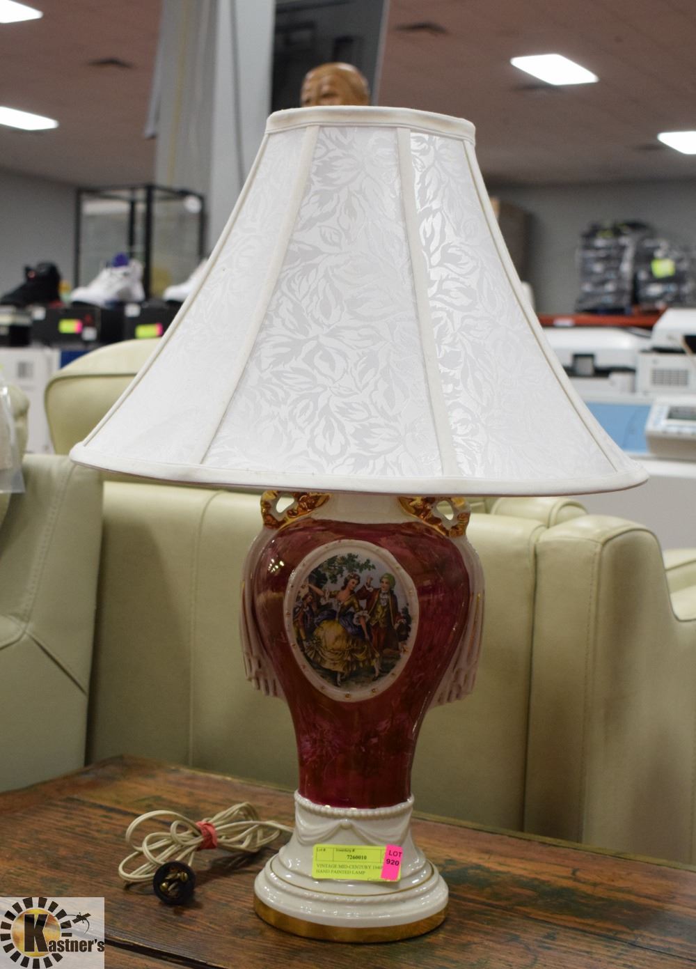 ANTIQUE LIMOGE MID-CENTURY 1940S HAND PAINTED LAMP