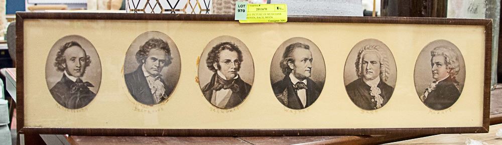 ANTIQUE PICTURE OF MUSICIANS BEETHOVEN, BACH, MOZA