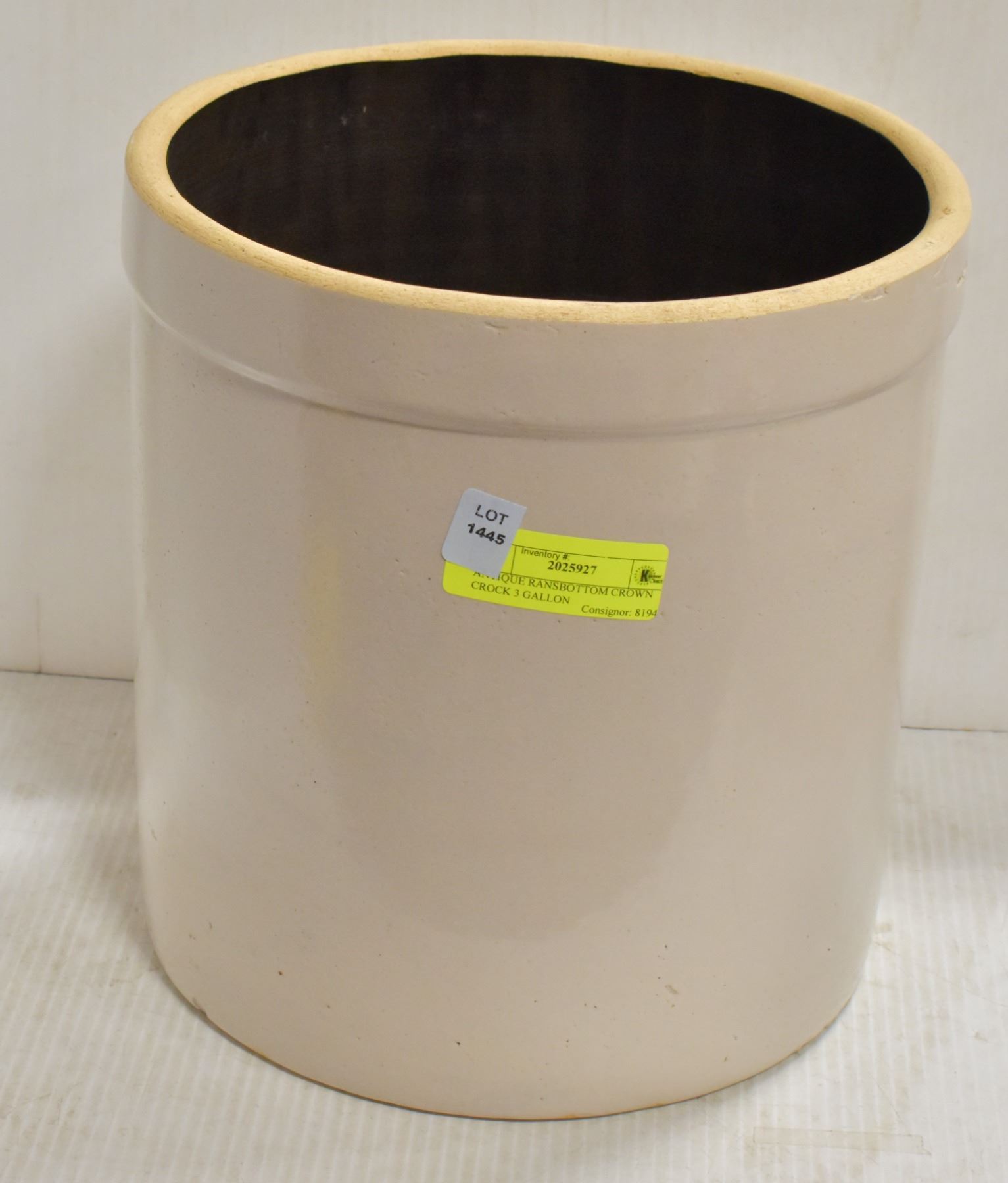 ANTIQUE RANSBOTTOM CROWN CROCK 3 GALLON