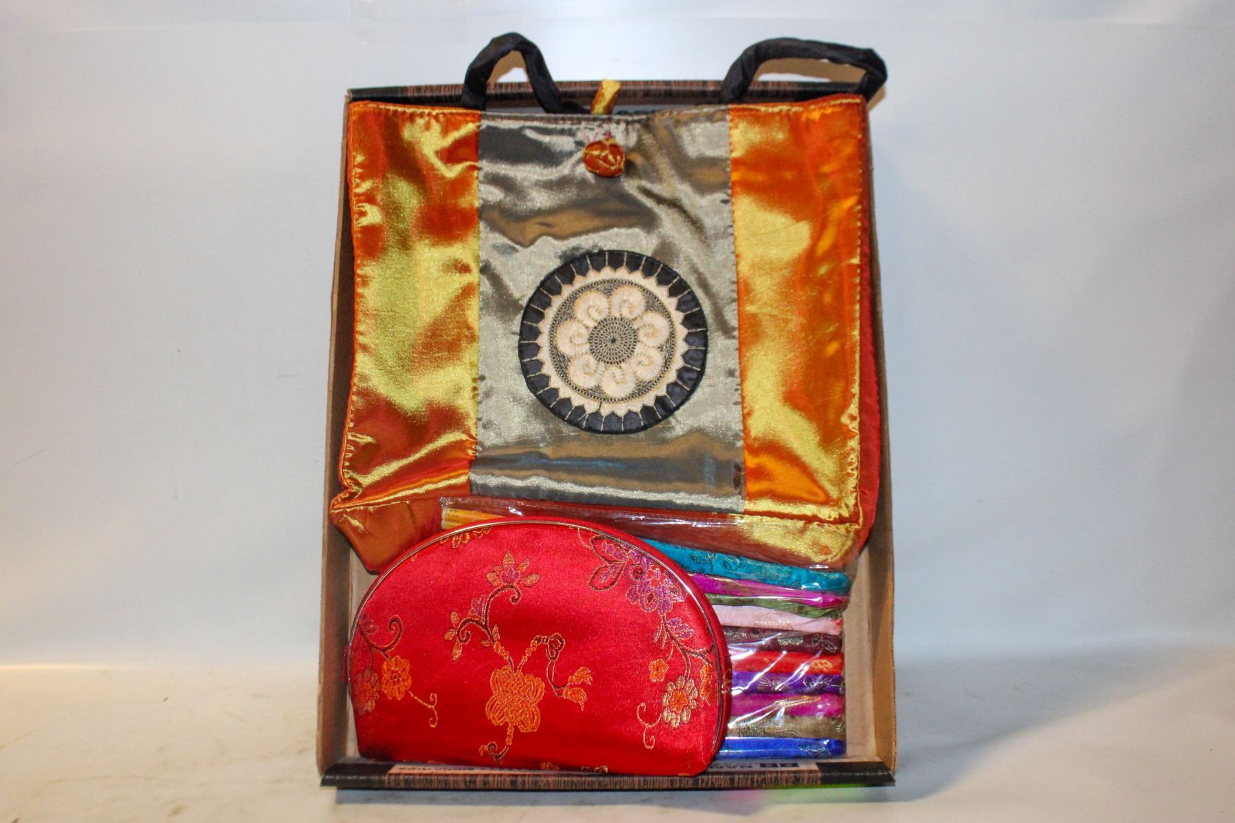 ASIAN SATIN TOTE BAG & MAKE UP BAGS ASSORTED