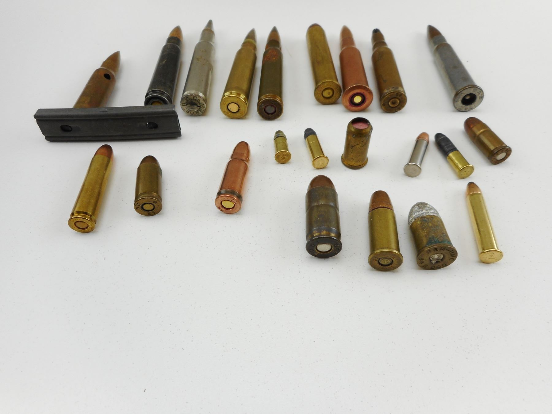 ASSORTED AMMO INCLUDING 22 AQUILA SNIPER, 22 WMR, 7.62 X25, 32 S&W, 44 BULLDOG , 22 RNDS ASSORTED AMMO IN BAG, INCLUDES SOME DUMMY RNDS