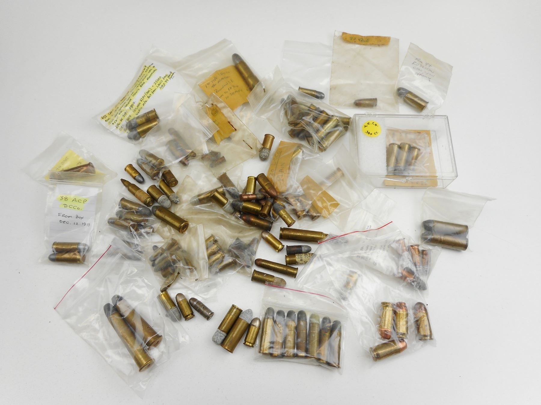 ASSORTED AMMO , APPROX. 106 RNDS AMMO, INCLUDING 38 SPL, 45 COLT, 32, 45 AUTO, 38 LONG, 32-30, 440, 45 WEB, 41 SDA, 455 COLT, 22 WIN, 22 SHORT, 32 SHORT, 38 SHORT, 44 RUSSIAN,