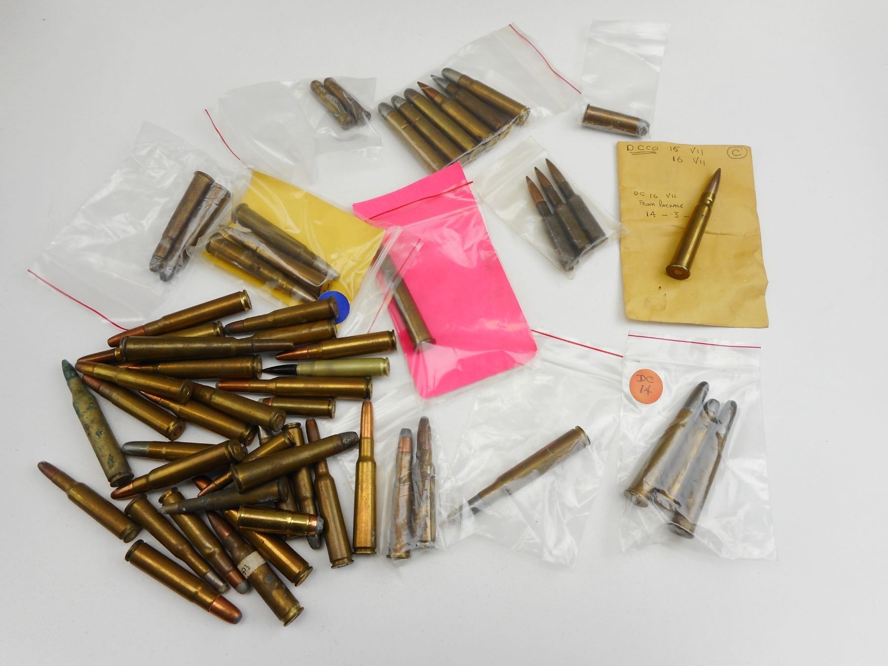 ASSORTED AMMO , 56 RNDS OF ASSORTED AMMO INCLUDING 30 REM, 38-55, 250 SAV. 35 REM, 38-56, 7MM REM, 6.5MM, 30-06 SPRG., 300 SAV. 44-40, 32 SPL.