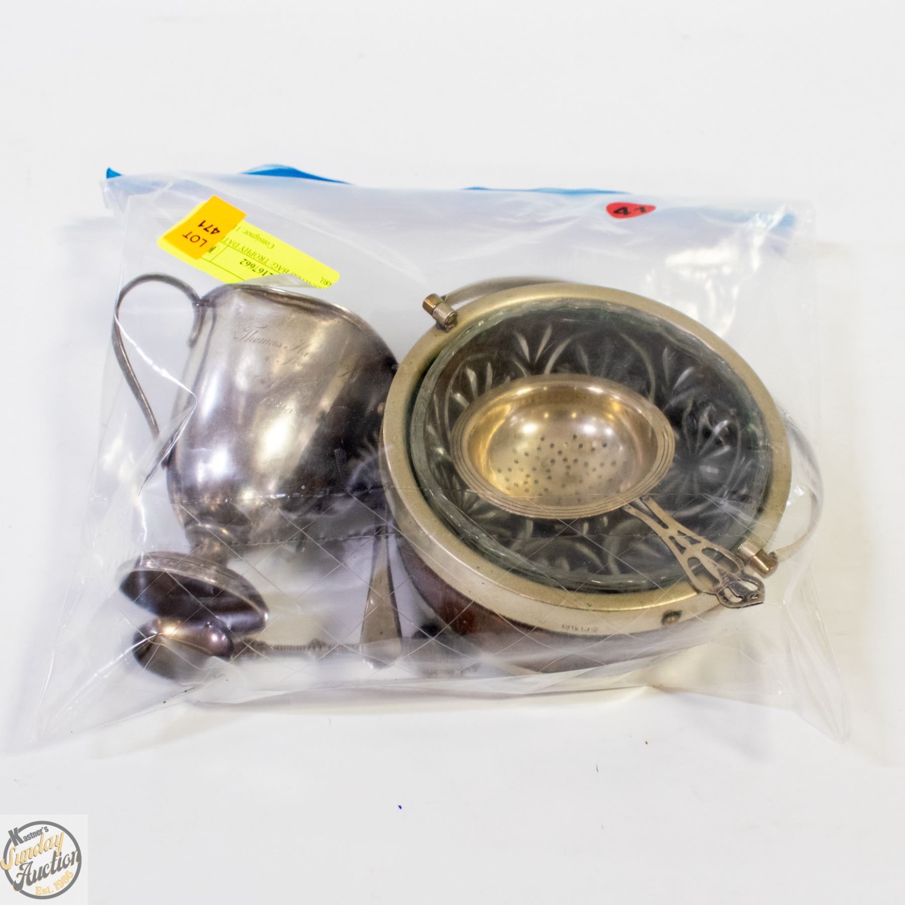 2 SPOONS, HALLMARKED TEA STRAINER, WOOD, METAL AND GLASS BASKET **ALL ITEMS MUST BE REMOVED BY 5PM SATURDAY, MARCH 21ST 2026. ALL REMAINING ITEMS WILL BE SUBJECT TO A $6.00 PER DAY STORAGE CHARGE. ANY ITEMS REMAINING AFTER MONDAY, APRIL 13TH 2026 WILL BE CONSIDERED FORFEITED. NO REFUNDS WILL BE ISSUED FOR FORFEITED ITEMS. TO SCHEDULE A PICK UP APPOINTMENT CLICK HERE
