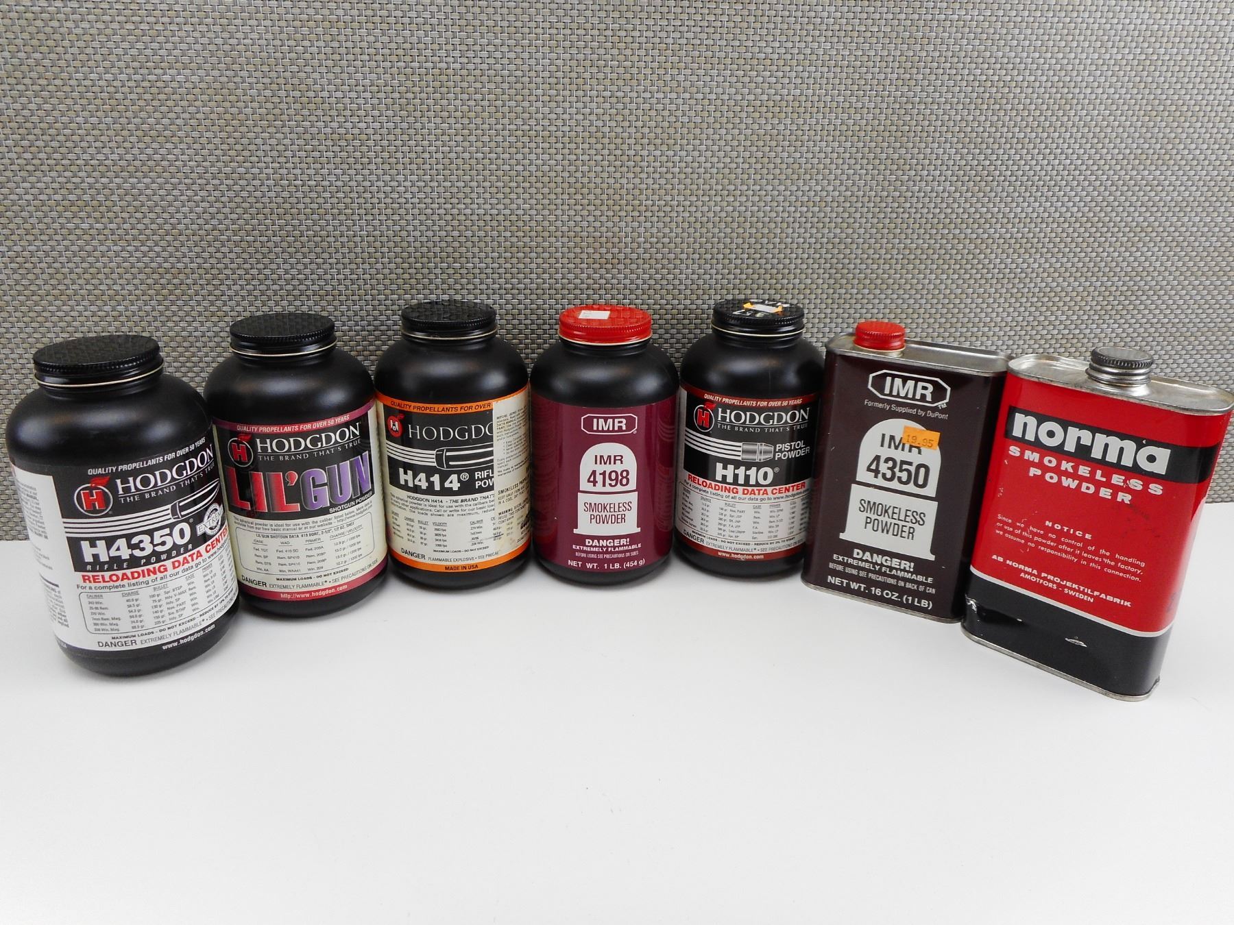 ASSORTED BLACK POWDER , 2.9 KG ASSORTED BLACK POWDER, INCLUDING HODGDON H414 RIFLE, HODGDON LIL'GUN SHOTGUN POWDER, NORMA 204 NO. 93204, HODGDON H4350 RIFLE. IMR 4198, HODGDON H110, IMR 4350